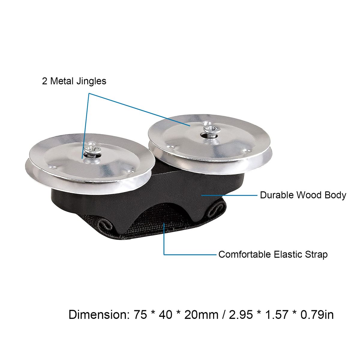 2 metal jingles are attached to a durable wood body; the finger jingle tambourine is of premium quality.