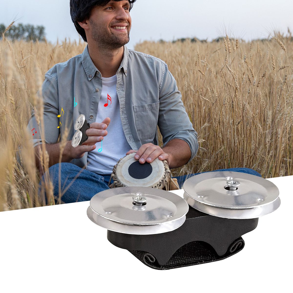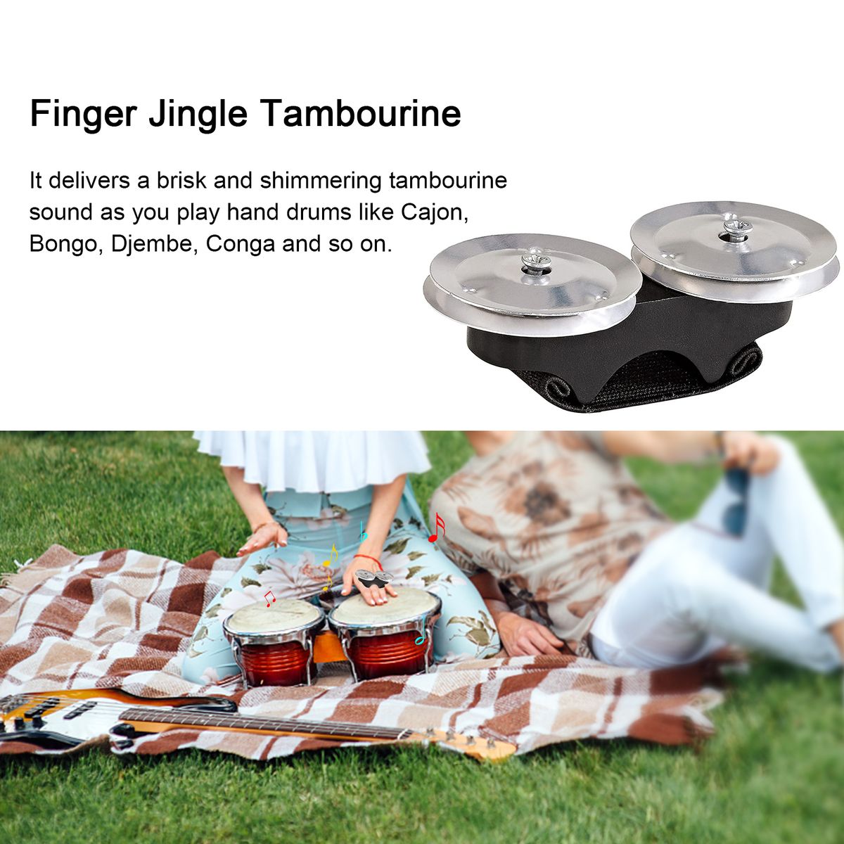 Finger jingle tambourine delivers a brisk and shimmering tambourine sound and is a good way to enhance any type of rhythmic style on hand drums. It's comfortable to wear, and lightweight to carry.