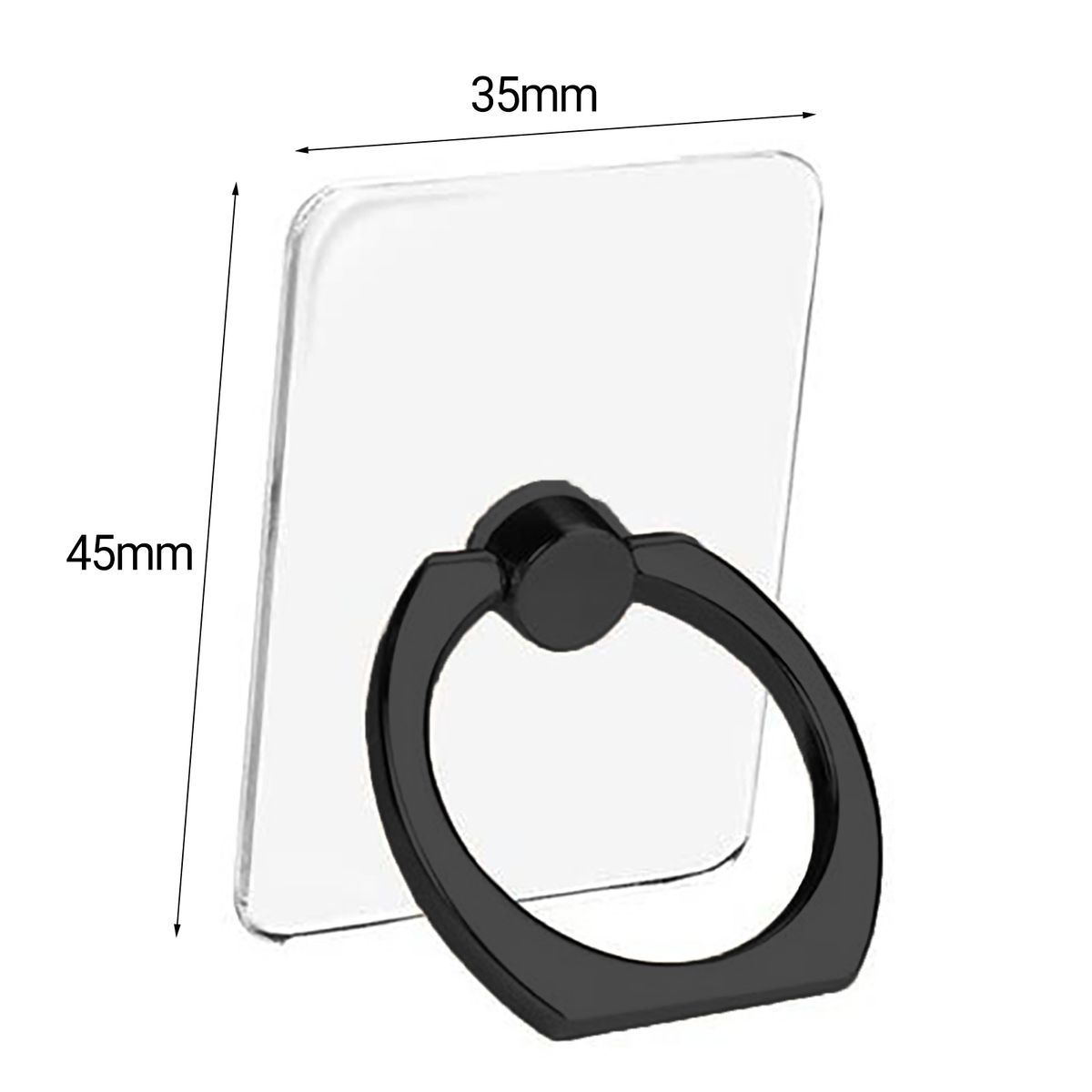The length of this finger ring phone holder is about 4.5cm, width is 3.5cm and thickness is 0.2cm.