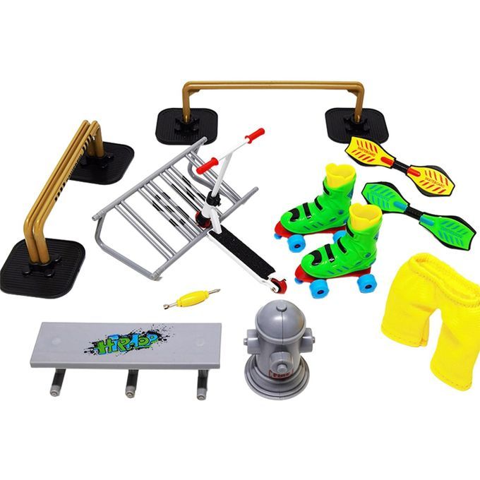 Optional:CDH-7: 2 PCS Skateboard Ramp1 PC Alloy Scooter1 PC Pants1 PC Bicycle6 PCS Plastic SkateboardsDisassembly Accessories10 PCS Rubber PadsCDH-8: 10 PCS Skateboard Ramp Props Combination 1 PC Alloy Scooter1 Pair Skates (Yellow and Green )1 PC Pants2 PCS Skateboard (Yellow, Green)15 PCS Assembly and Disassembly Accessories20 PCS Rubber Pad 20 PointsCDH-9: 10 PCS Skateboard Ramp Props Combination1 PC Bicycle (Black)2 PCS Scooters (Gold, Purple)1 PC Pants (Yellow)2 PCS Skateboard (Yellow, Green)4 PCS Disassembly AccessoriesCDH-10: 3 PCS Skateboard Ramp1 PC Plastic Scooter (Gold Head)1 PC Alloy Scooter (Black)1 PC Pants (Blue)1 PC Bicycle (Blue)1 PC Plastic SkateboardDisassembly Accessories20 PCS Rubber Pads