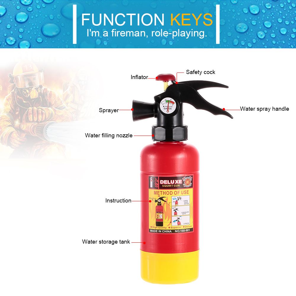This funny water spraying toy with the fire extinguisher style makes your children to be future firefighter.