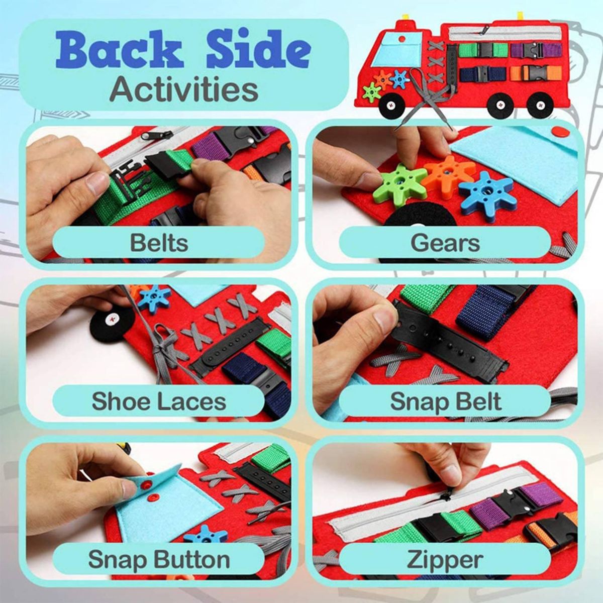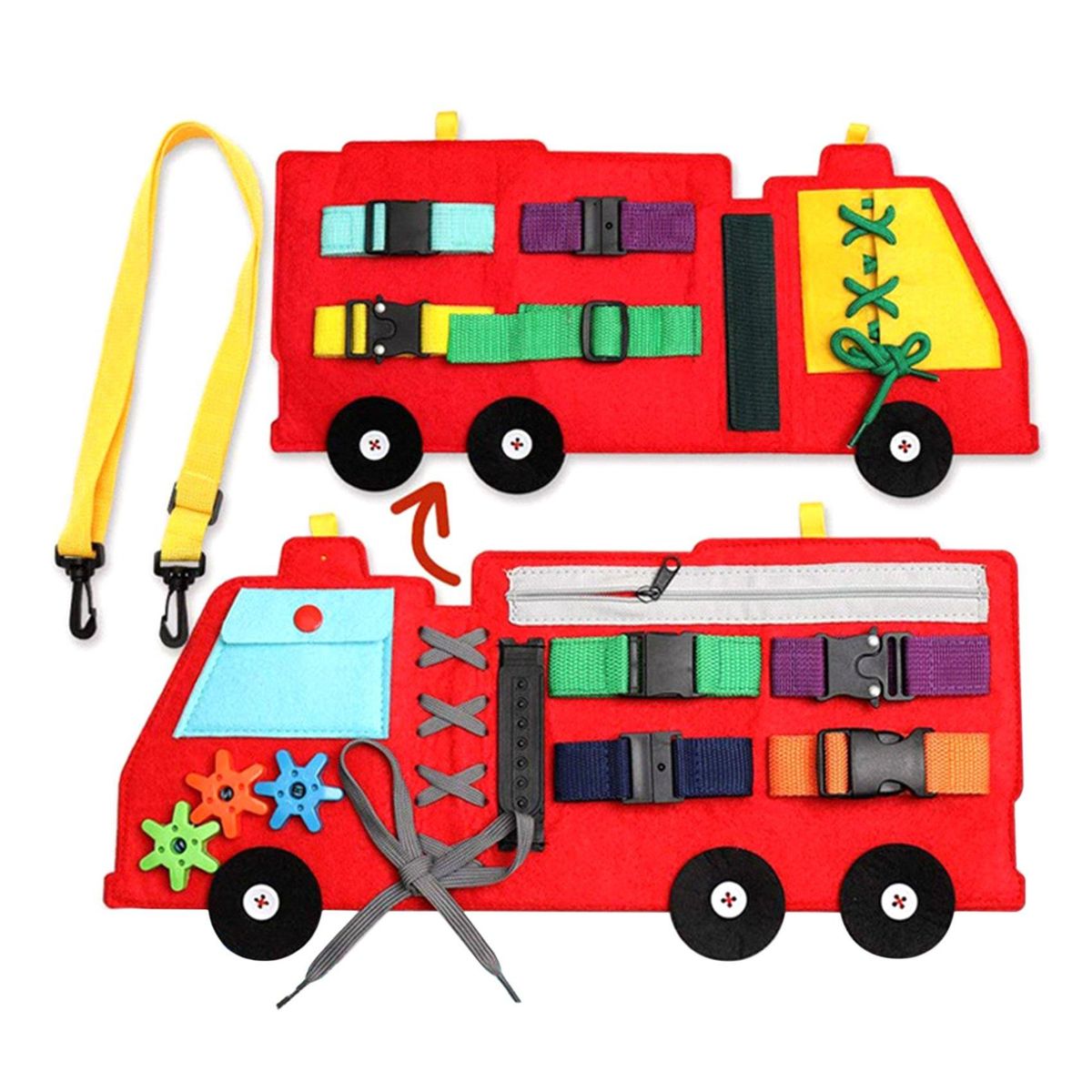 Featuring zip, laces, button, snap, etc and bright colors, the busy board toy helps to develop essential life skills, improve fine motor skills and practice essential dressing skills at their own pace while playing.
