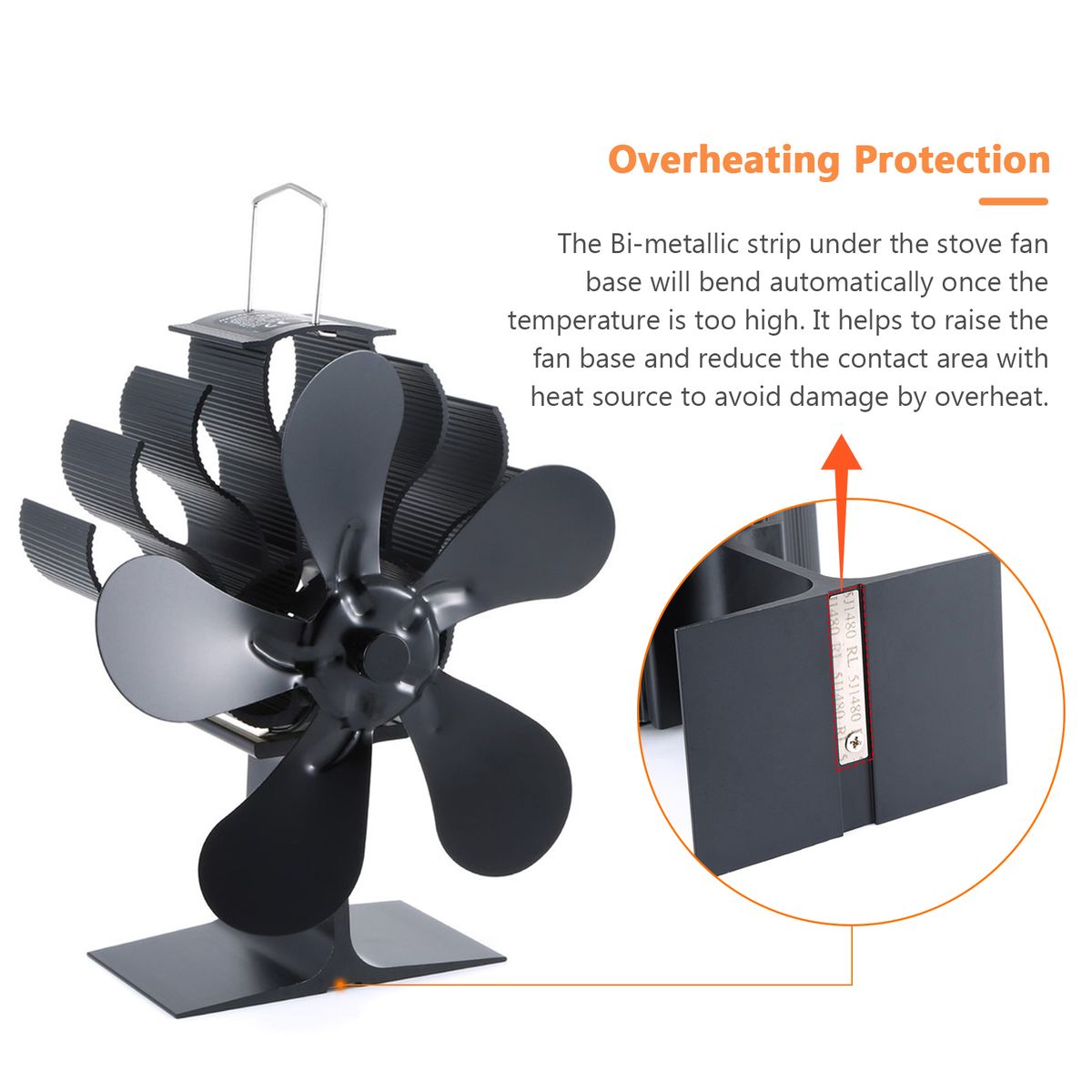 5 blades design, the stove fan can diffuse warm air throughout the whole room. Just place the stove fan on a smooth flat surface of your stove top, near the side or back of the stove pipe.