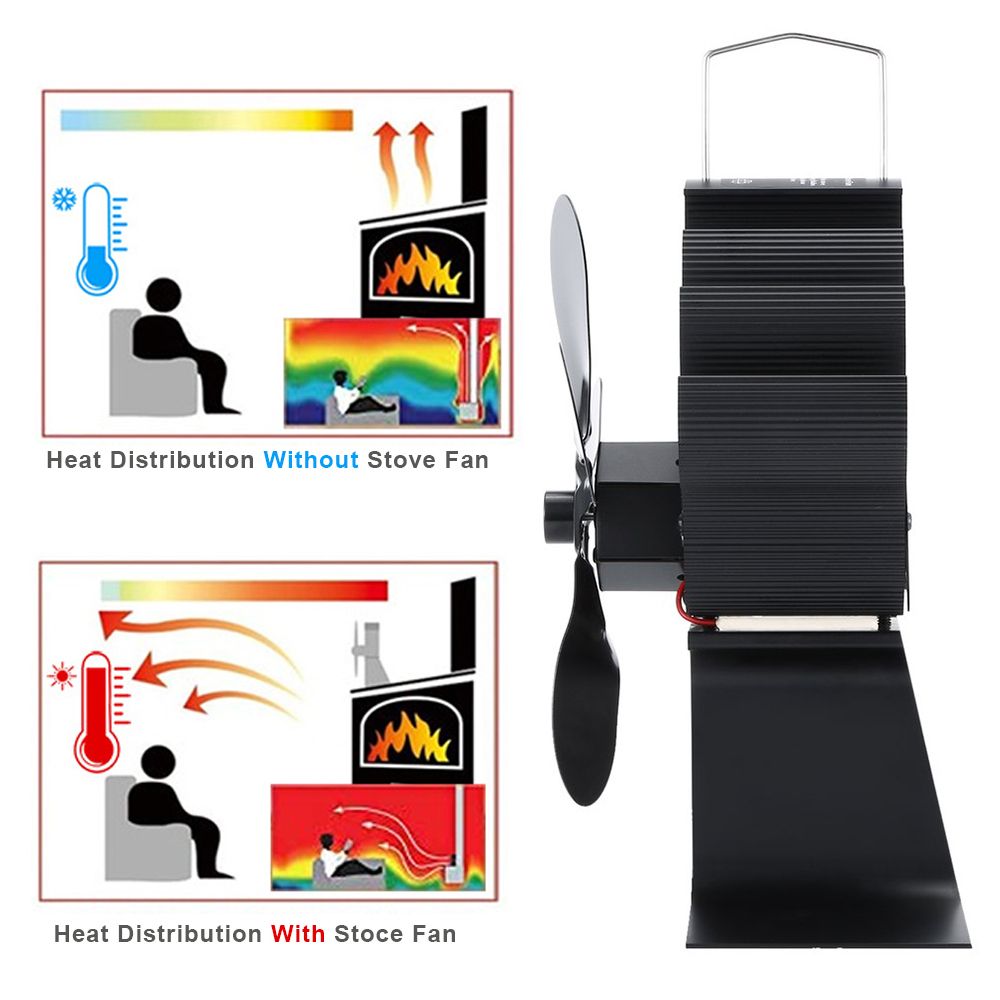 The heat powered stove fan can convert the heat from stove into electricity to make the blades spin. No batteries or electricity required, eco-friendly.