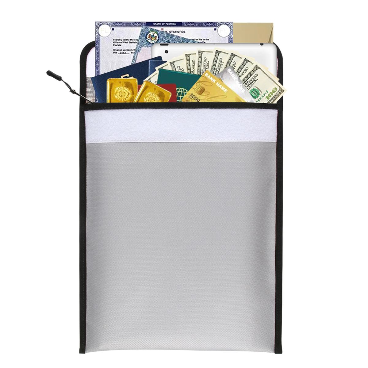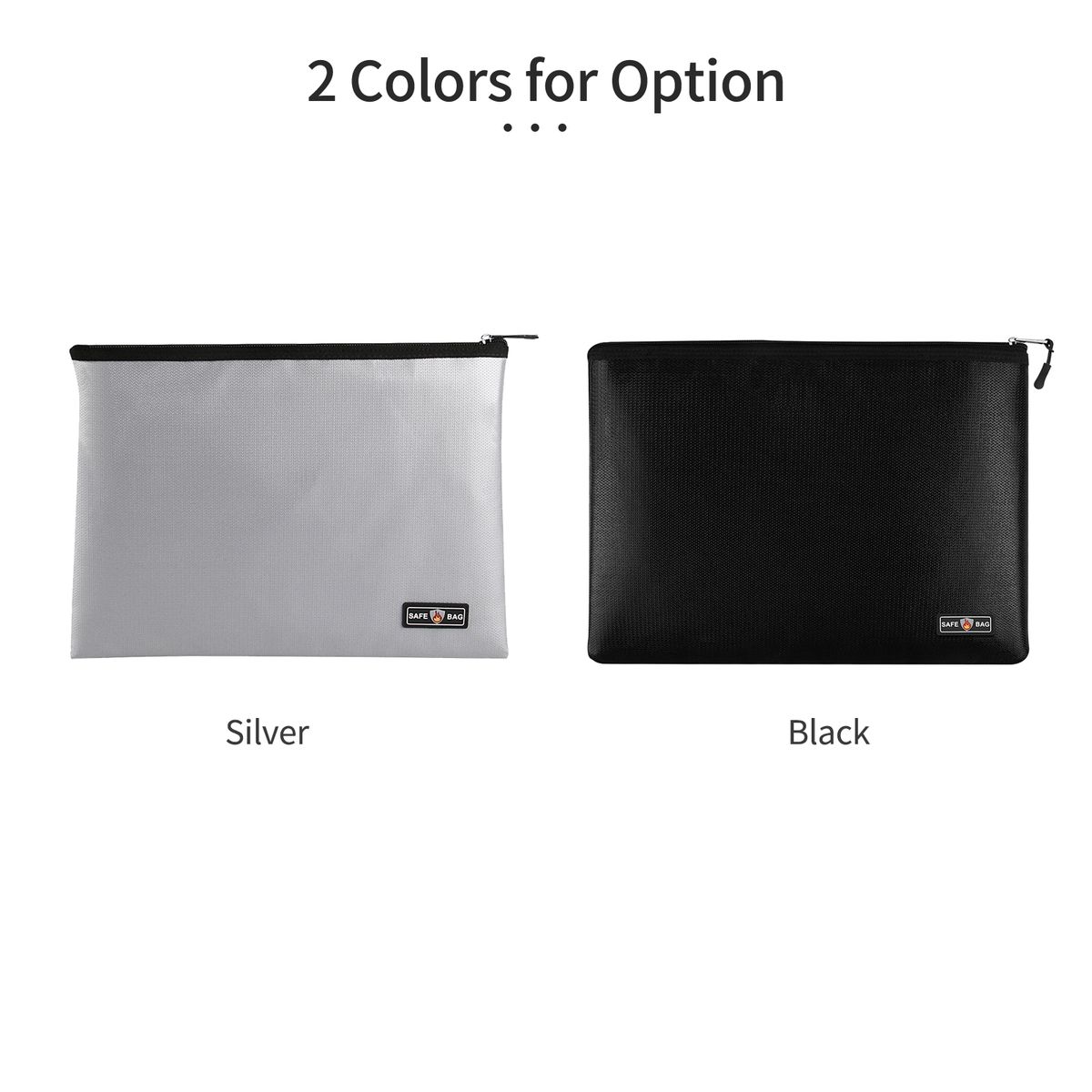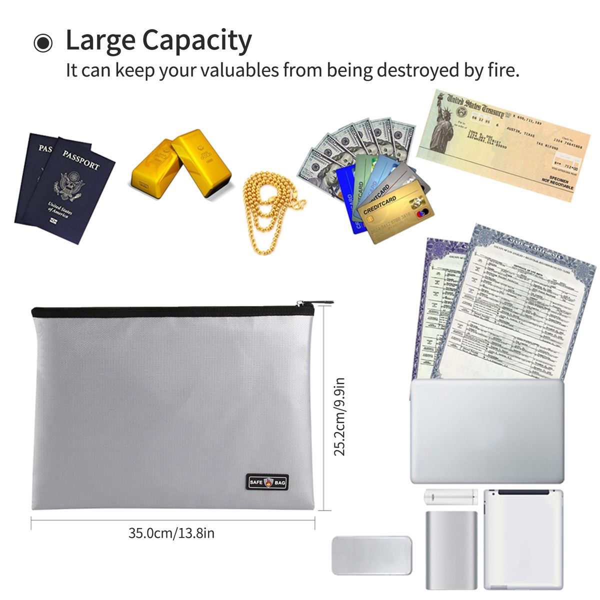Fireproof Document Bag Fireproof and Waterproof File Folder Money Bag Safe Storage Pouch Holder Organizer with Zipper Closure for A4 File Money Cash Jewelry Passport and Valuables