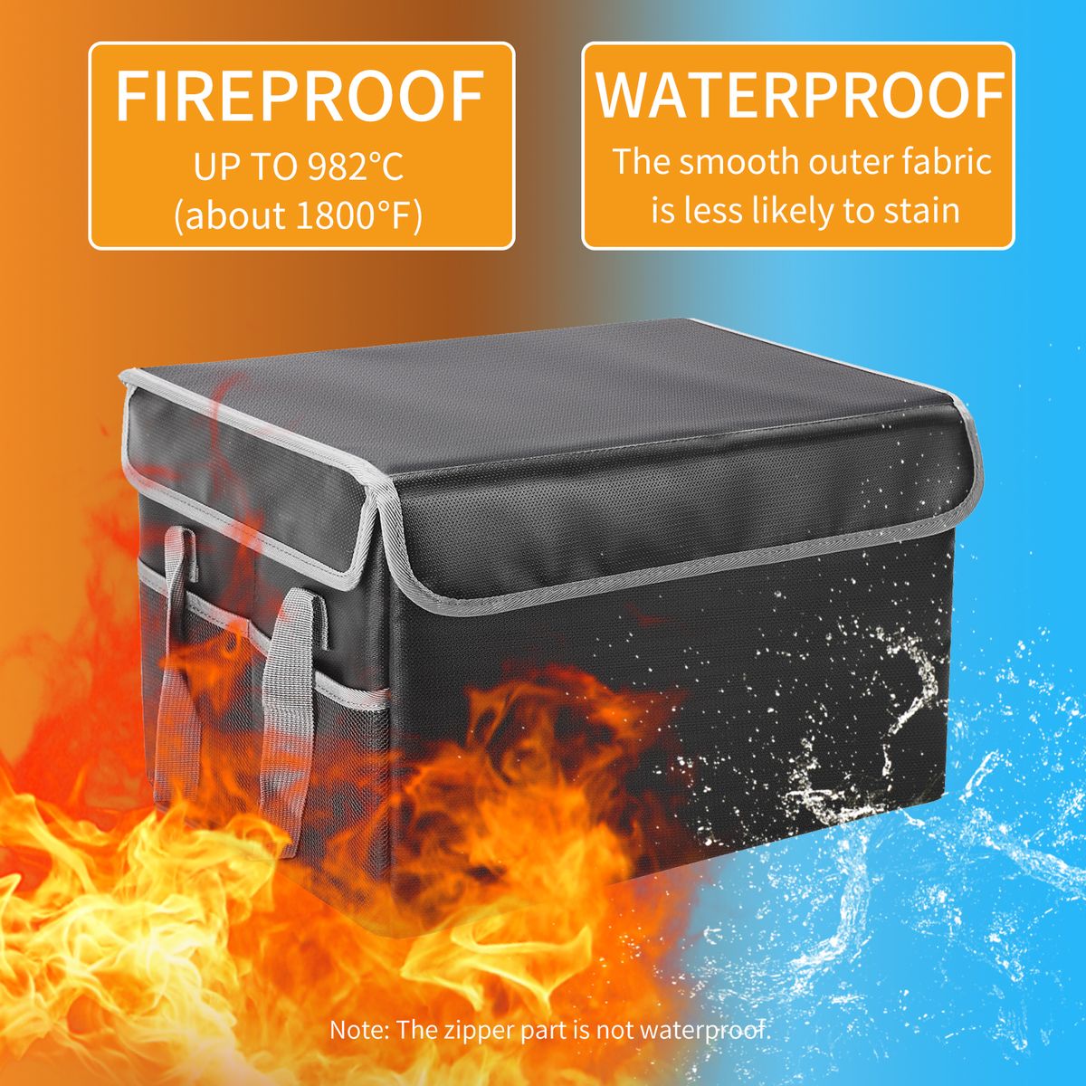 【Fireproof Document Storage Box】 The outer packaging is made of silicon coating fiberglass cloth, which is a fireproof and waterproof material, resistant to high temperature of 2000°F (550°C), to avoid water drop damage, and to provide safer protection for internal items.