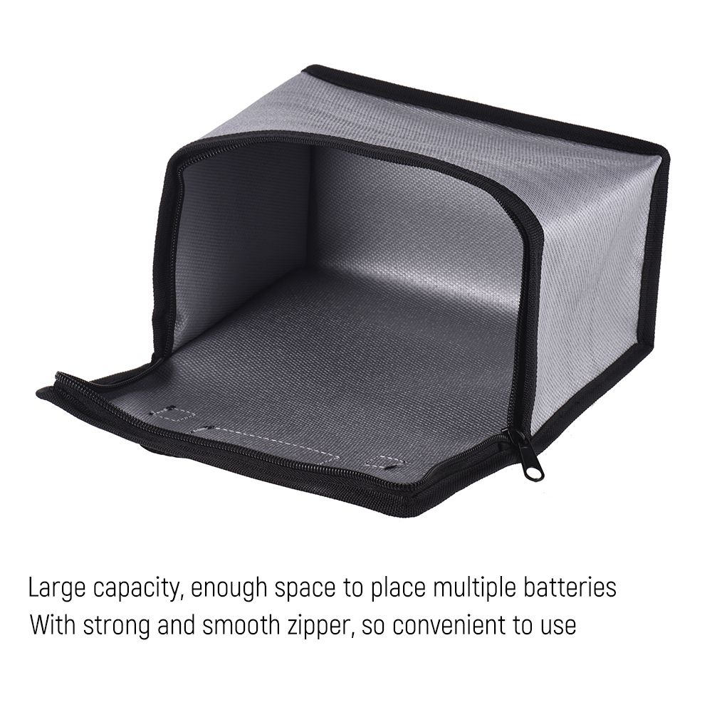 Safe: Stitched with strong and smooth zipper, don\'t worry about your slip and go missing from the safe bag; Special high temperature resistant material, to stop and contain any fire caused by incorrectly charging or poor function lipo batteries, can be used when charging battery, transporting it and storage, very safe.