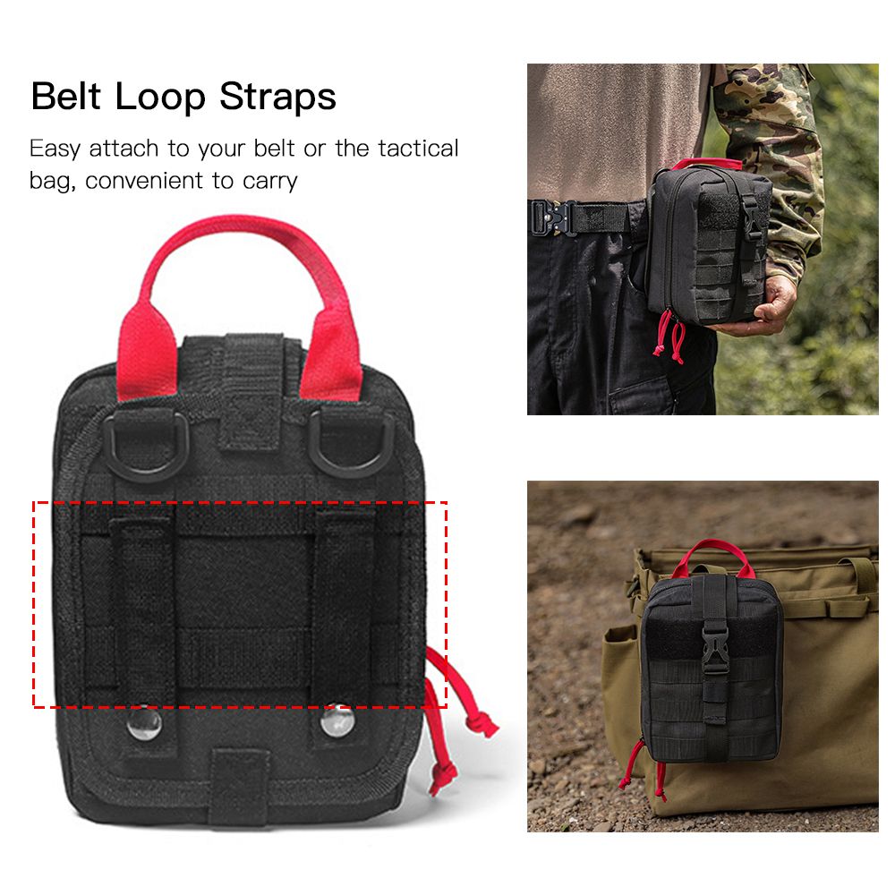 Belt loops on the back allow you to hang the bag on your belt, vest, backpack, or tactical bag.