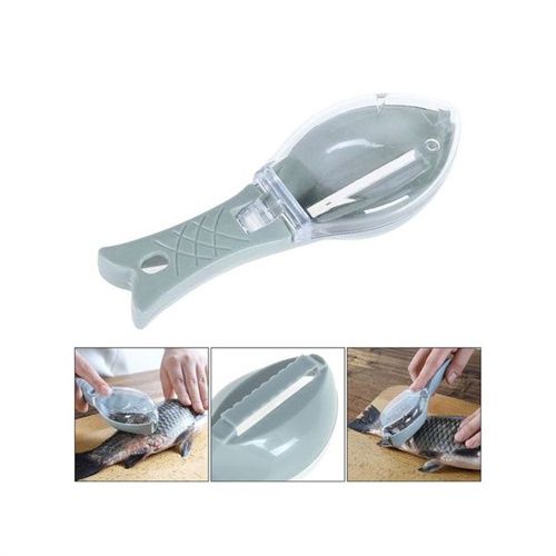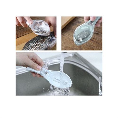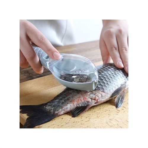 - Fish Scaler shape design can remove fish scales very fast, and it can prevent you from cutting your hand when using because of its non sharp design. The fish scaler collecting case with lid design collects fish scales when you use, so no fish scales flying, keeping your kitchen clean and saving your housework time.