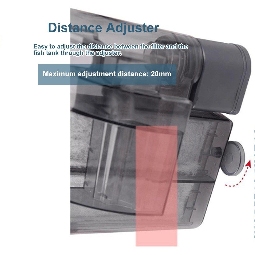 Adjustable distance between the filter and the fish tank, and adjustable water flowing through the adjustment controller.