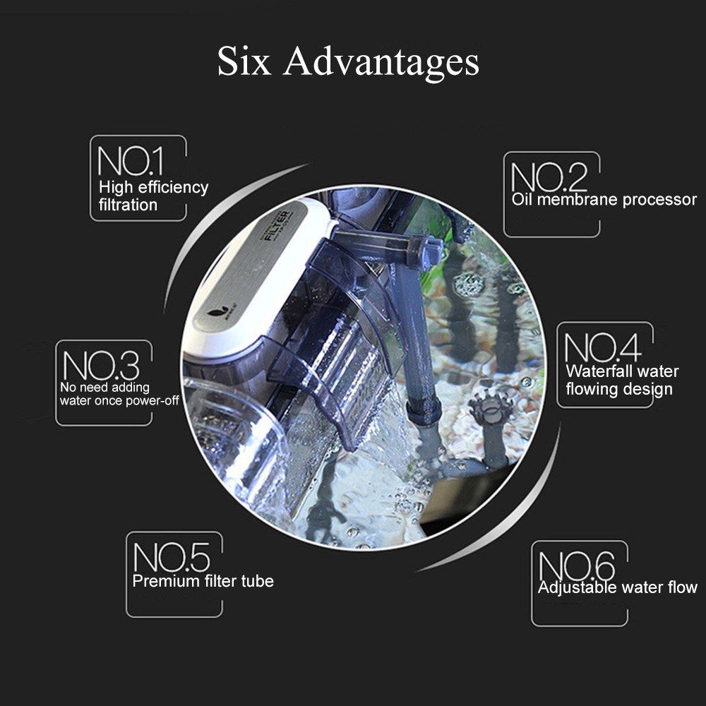 This aquarium filter performs three functions at the same time: water filtration, water circulation and aeration. Waterfall water flowing design, high efficiency filtration. Perfect to help improve water quality so as to keep your aquarium in optimum condition.