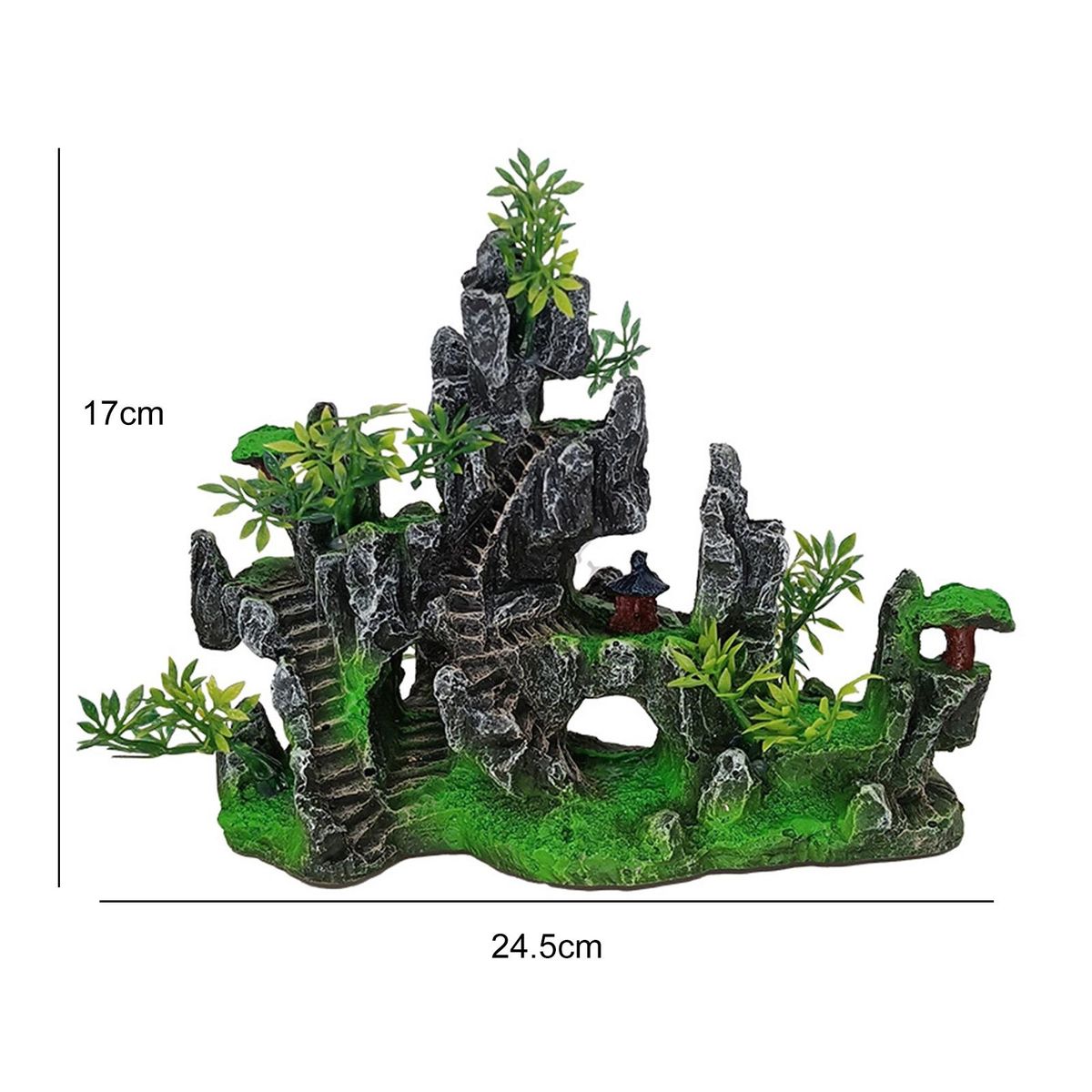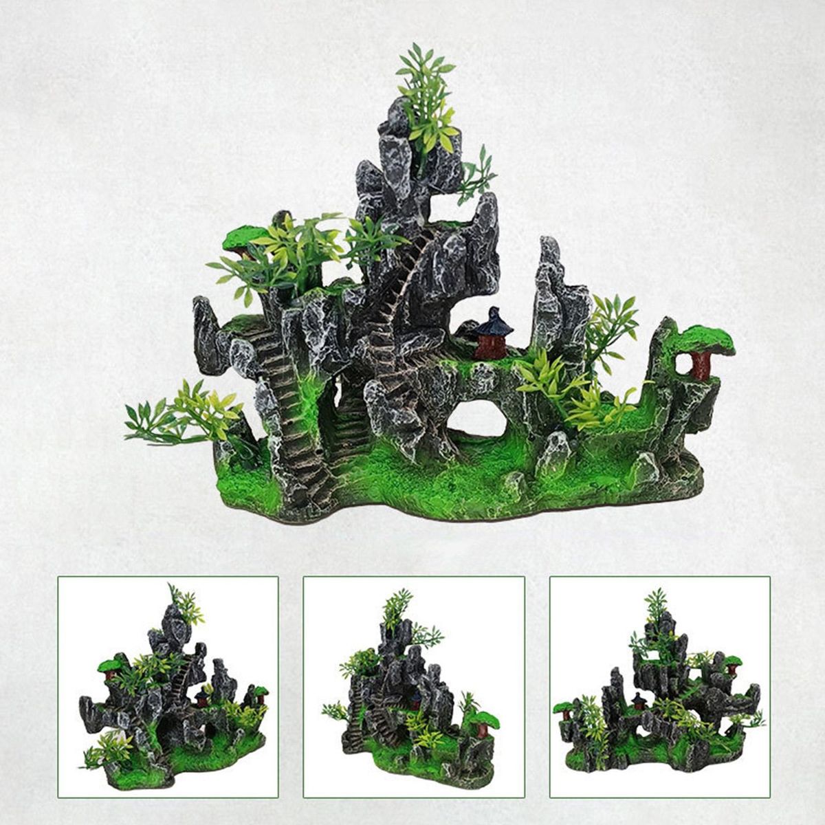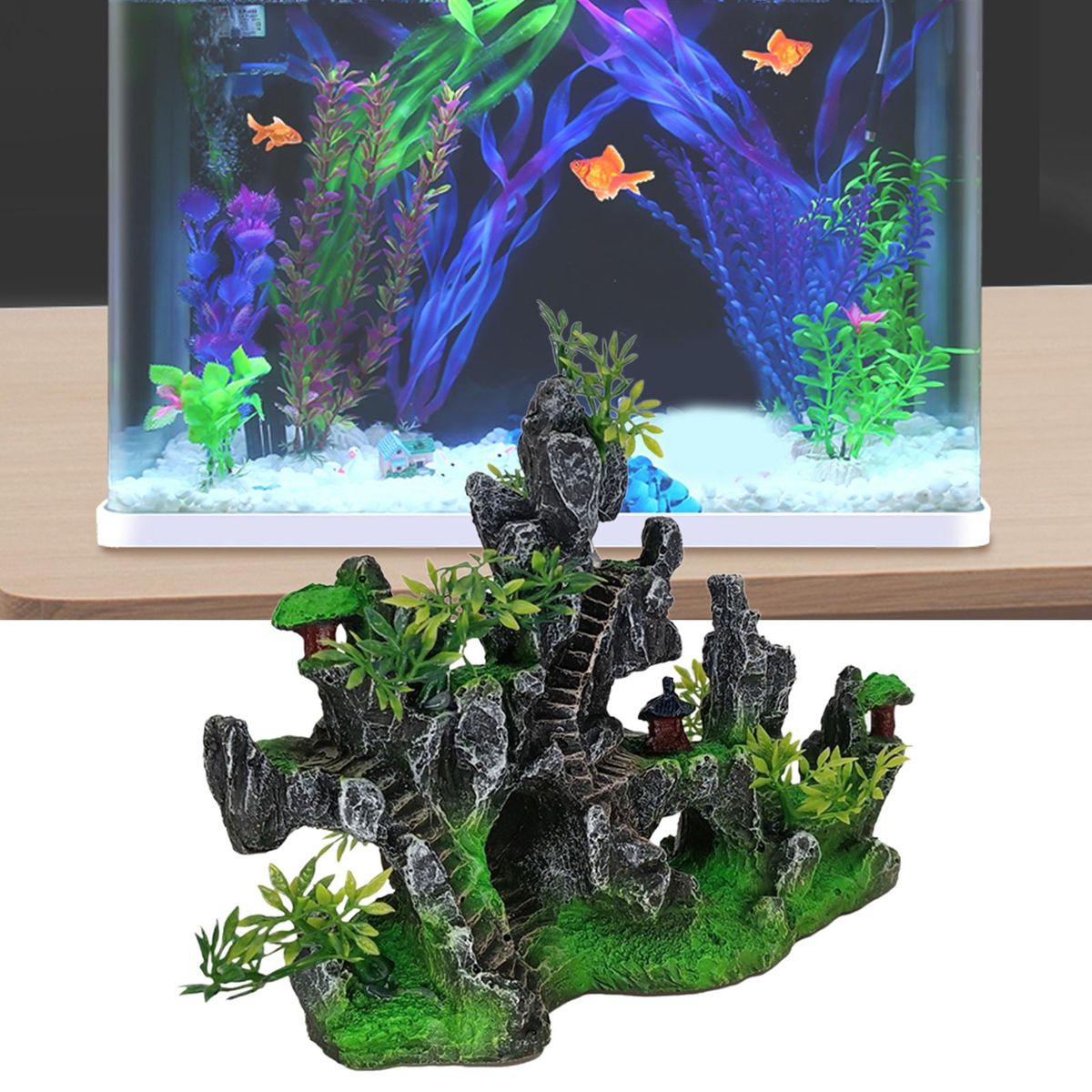 Made by resin material, the artificial mountain is environmentally friendly and colorfast. It has insolubility feature that will not harm the fish.