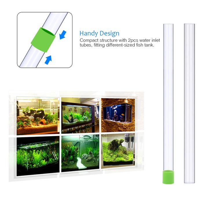 Handy Design: compact structure with 2pcs water inlet tubes, fitting different-sized fish tank.