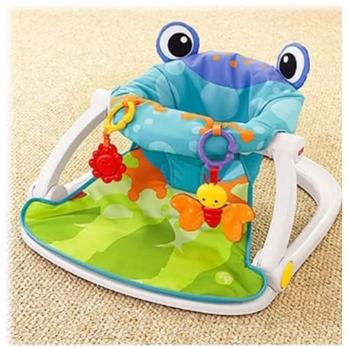 Sit and Play! As baby grows, the seat converts to an activity floor toy for independent sit and play. A spinner, 2 shape buttons and a flip book with chunky pages to turn encourage fine motor skill development & ndash; and introduce baby to ABCs, shapes and colours and more!