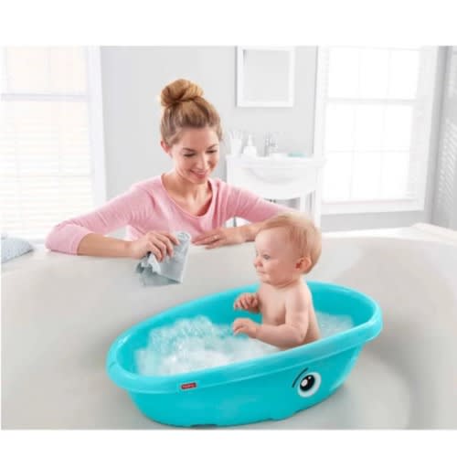 Fisher-Price Whale of a Tub adjusts over time, so this whale pal can keep up with your baby & rsquo;s splishs and splashs from newborn to toddler. The contoured infant seat and soft foam headrest helps keep infants comfy & secure during bath time.