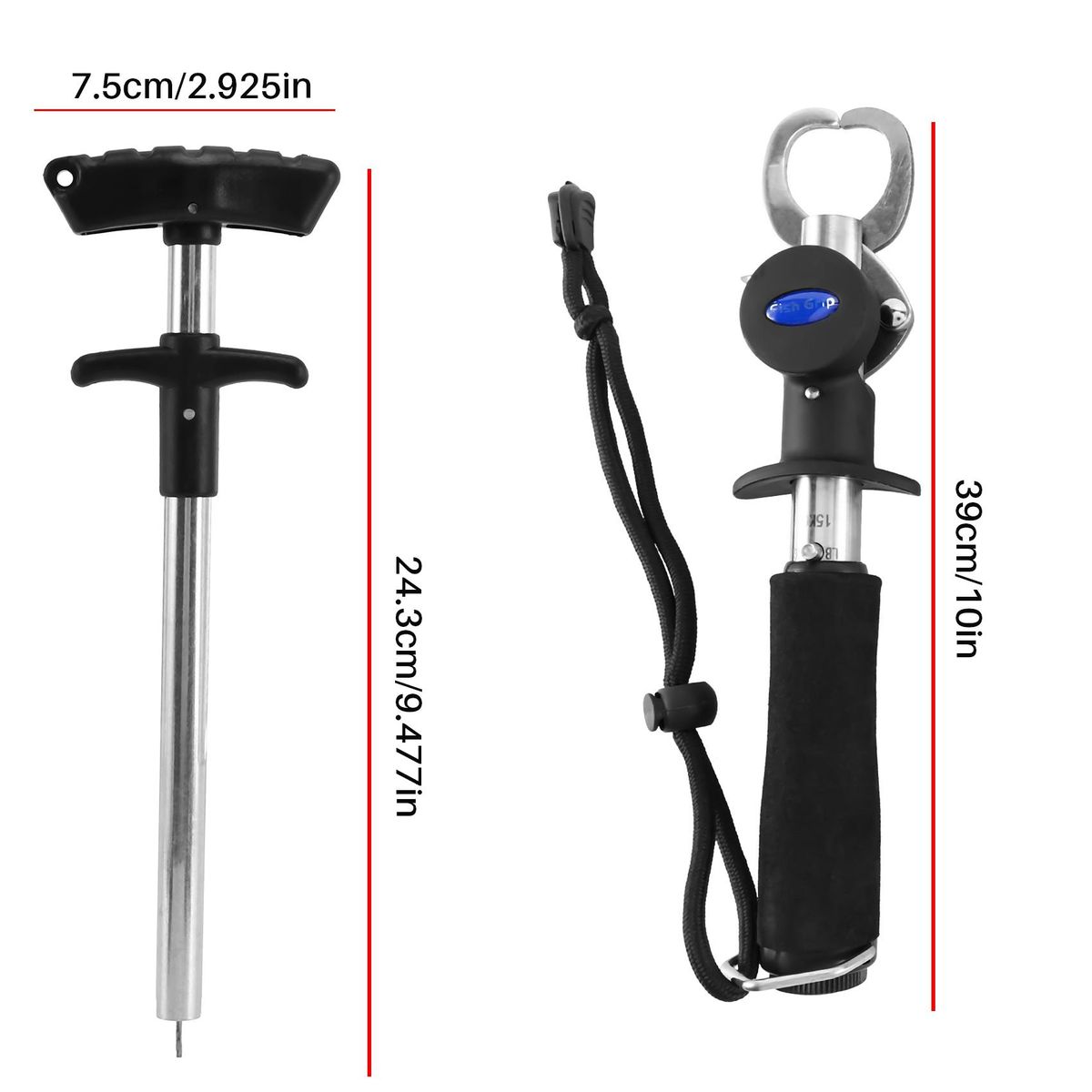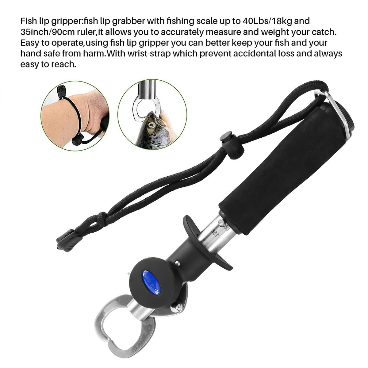 Fish lip gripper:fish lip with fishing scale up to 40Lbs/18kg and 35inch/90cm ruler,it allows you to accurately measure and weight your catch. Easy to operate,using fish lip gripper you can better keep your fish and your hand safe from harm.With wrist-strap which prevent accidental loss and always easy to reach.
