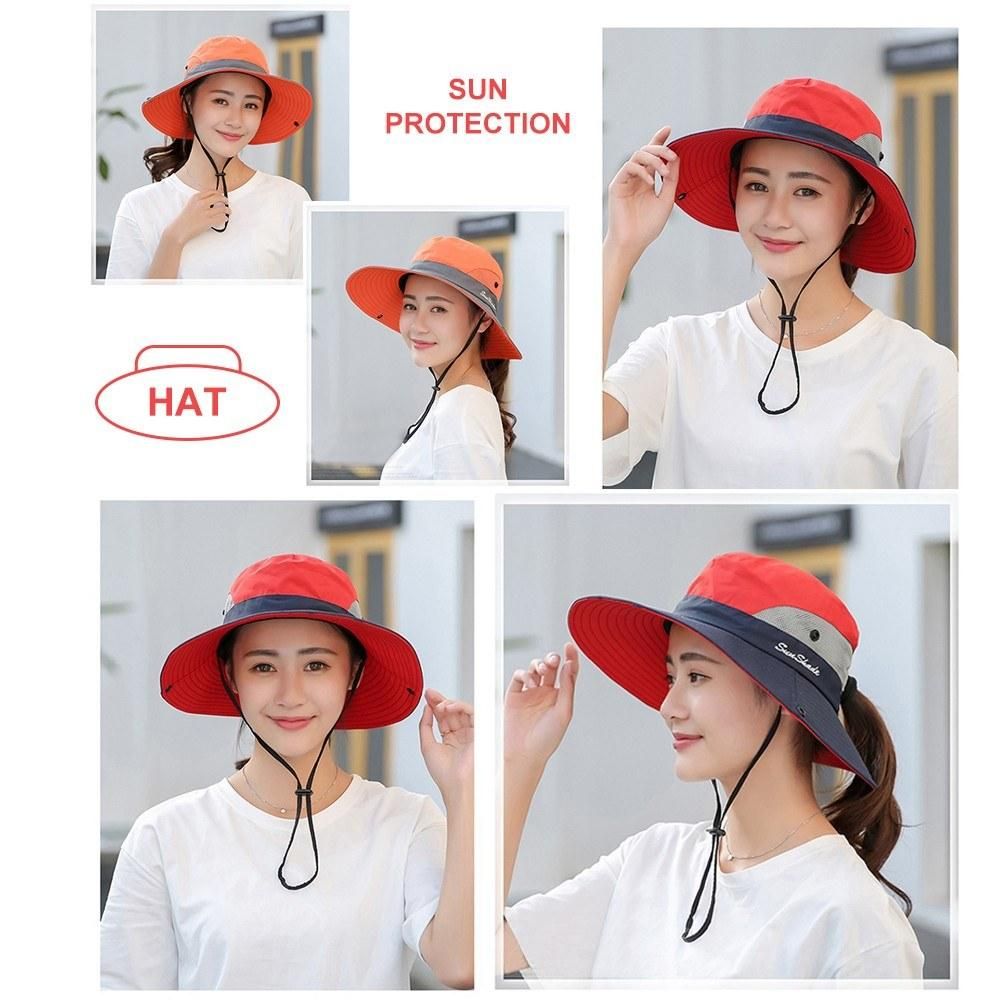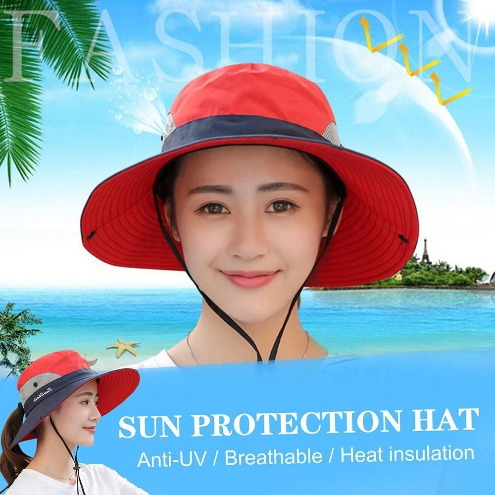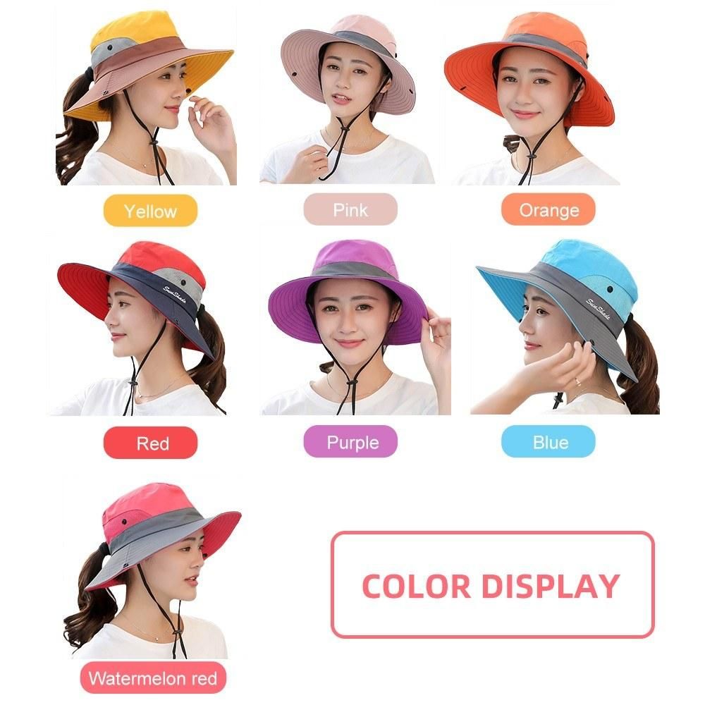 Buy Fishing Hat for Women Men Mesh Outdoor Summer UV Protective Hat Wide Brim Foldable Cap with Ponytail Hole in Nigeria