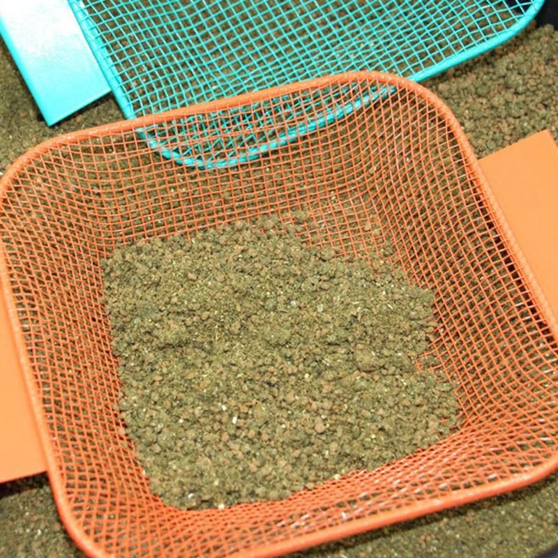 These can be tied on with electrical zip ties. Bait falls through the sieve leaving the behind.