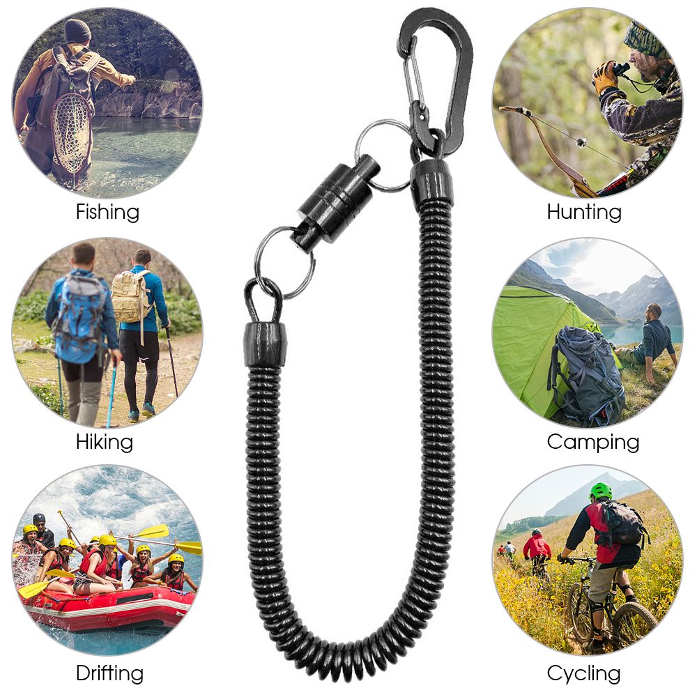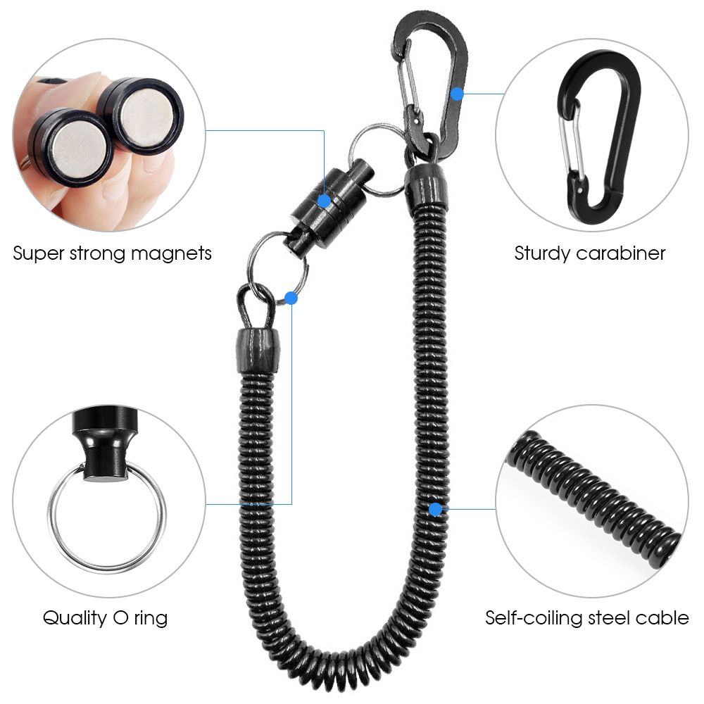 Super strong magnets keep your fishing gear (fishing gripper, pliers, landing net etc.) attached.