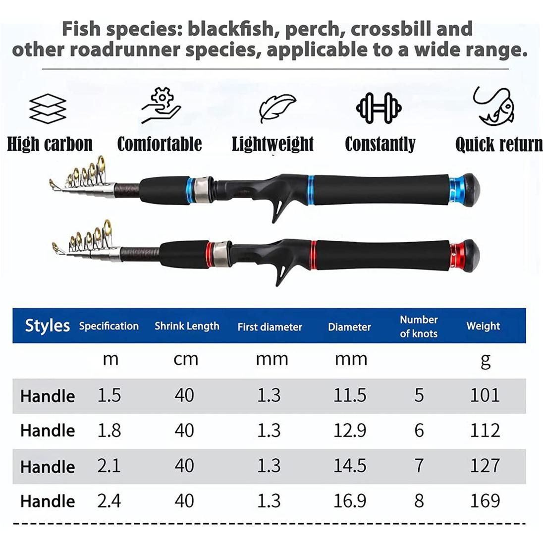 SUPERIOR QUALITY - Only high-quality components, The entire series of spinning rods and casting fishing rods makes a great travel fishing pole or back-up telescopic fishing pole.