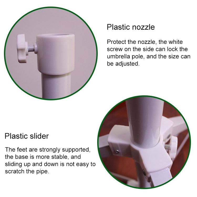 5. Nozzle: plastic, can protect the nozzle, side white screw can lock the umbrella rod, adjust the size