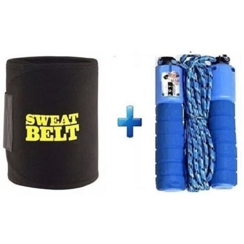 Buy Fitness Bundle - Sweat Belt Waist Trimmer Tummy Fat Burner + Skipping Rope in Nigeria
