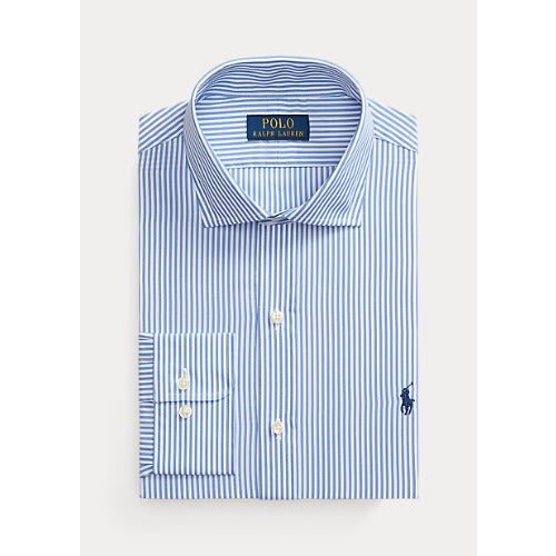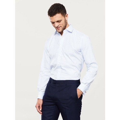 Classic stripes, this blue and white shirt is made from the finest 2-ply 100s cotton. The slim fit is our most regular fit. It is gently tapered across the waist and chest, creating a relaxed yet defined silhouette. The double cuffs allow you to personalise your shirt as you can add cufflinks or silk knots of your choice.