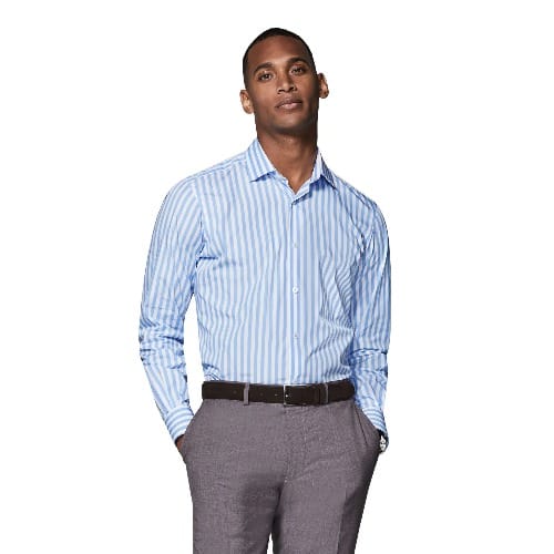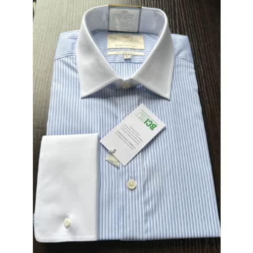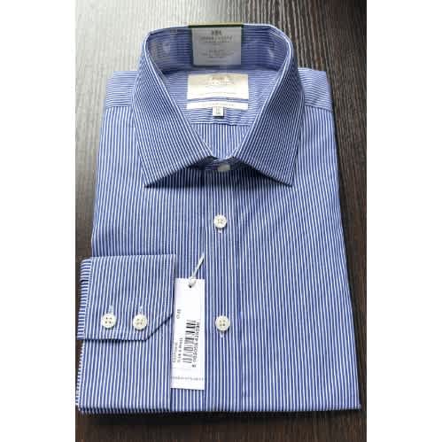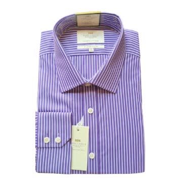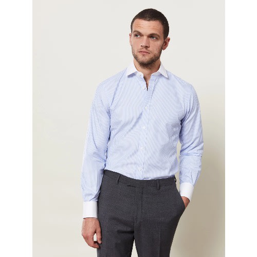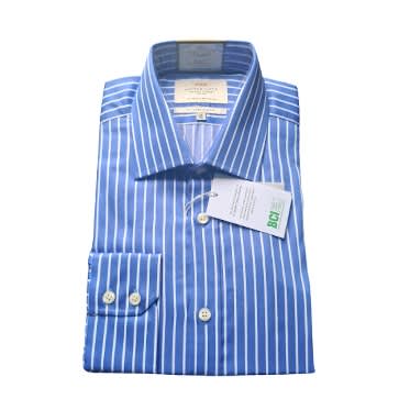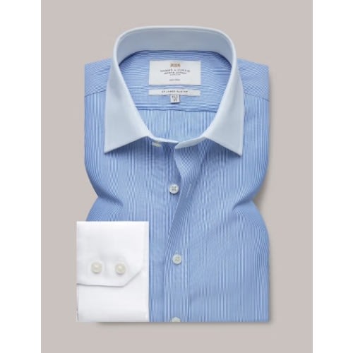 Adding a touch of contrast to the traditional striped shirt, the white collar and cuffs reimagines classic shirting. Closely cut to the body and slightly tapered at the waist, creating a narrow silhouette with subtle definition, you will look sharp from desk to dinner plans.At Hawes and Curtis we appreciate that our clientele lead busy lives, and as a solution we have introduced our non-iron range. These shirts utilise the latest anti-crease technology which lasts much longer than other non-iron shirts.