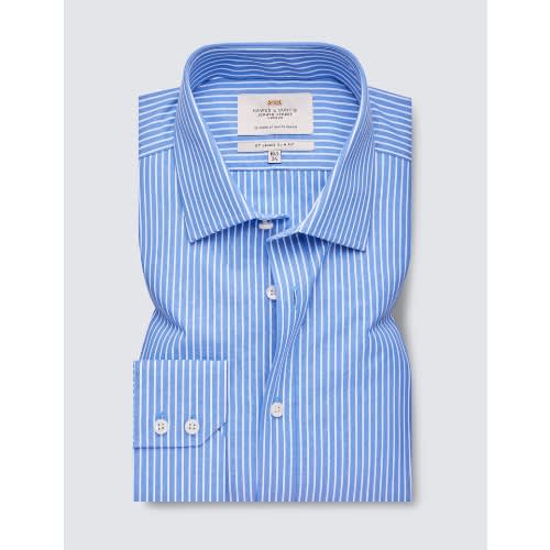 Men's Non-iron Blue & White Stripe Slim Shirt - Double Cuff