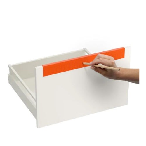The strip on the drill template is put against the edge of the door or drawer front; helps you to place the handle perfectly straight vertically or horizontally.