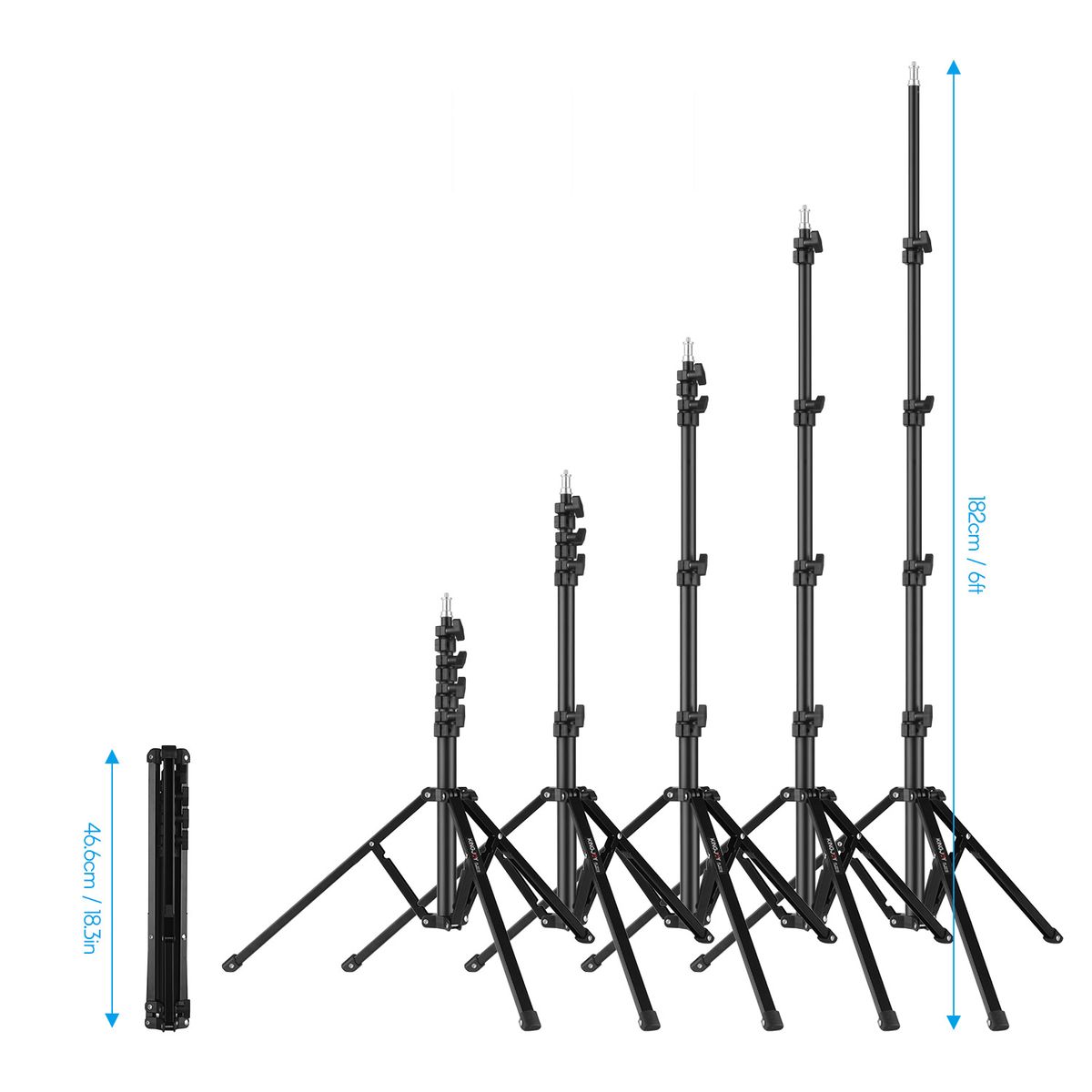 Max. height is 182cm/6ft, and load capacity is up to 10kg/22lbs, suitable for studio reflector, softbox, LED video light, ring light, etc.