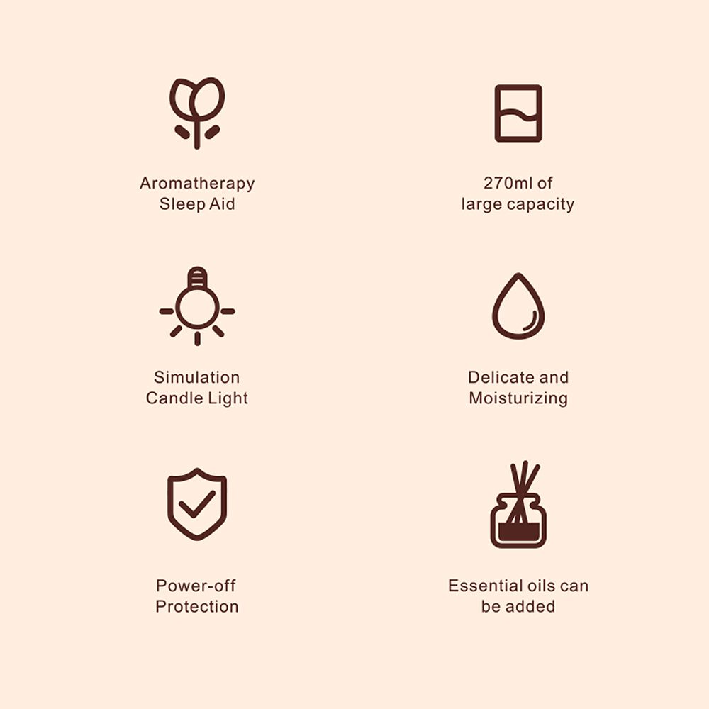 Realistic Flame Design: Aromatherapy diffuser with realistic flame design adds a cozy and calming atmosphere to home, bedroom, office or yoga space, perfect for relaxing after a long day.