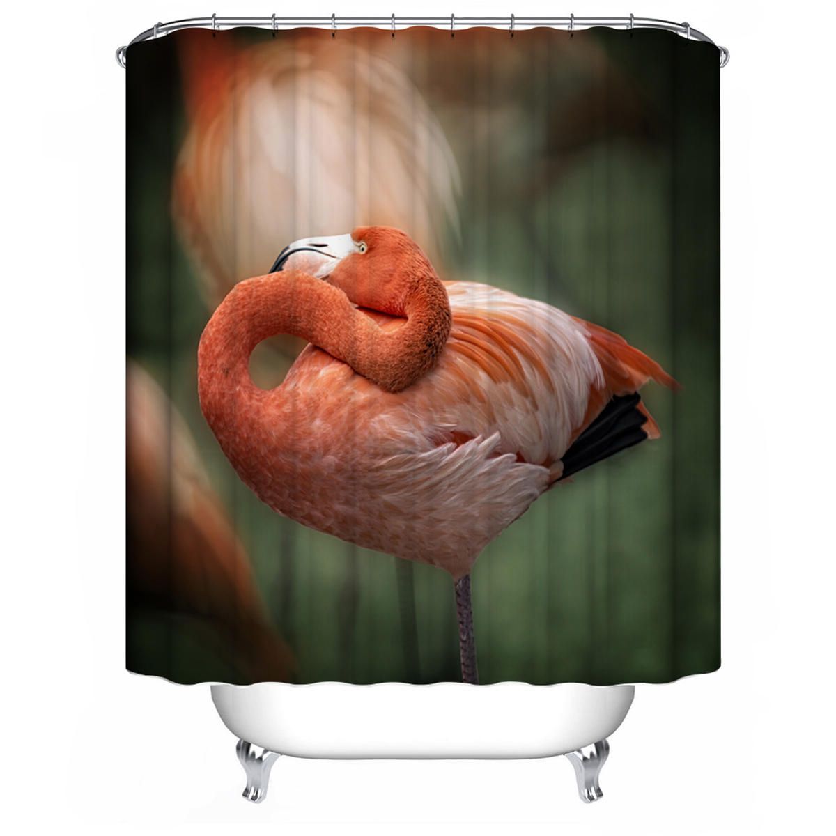 Flamingo Bathroom Waterproof Shower Curtain Non-slip Toilet Cover Rug Set