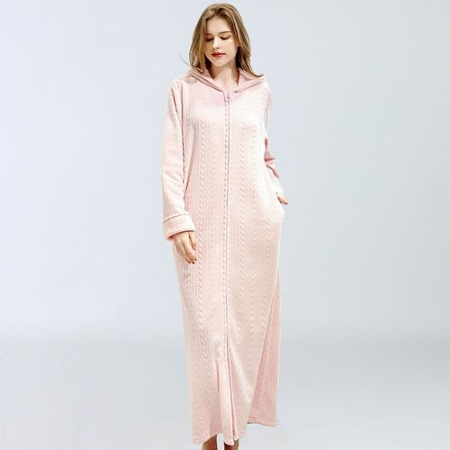Style-1:Flannel Zipper X-Long Bathrobe Women