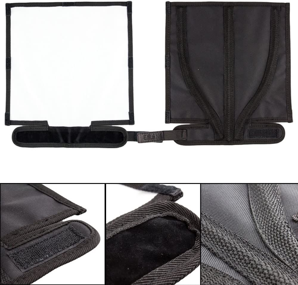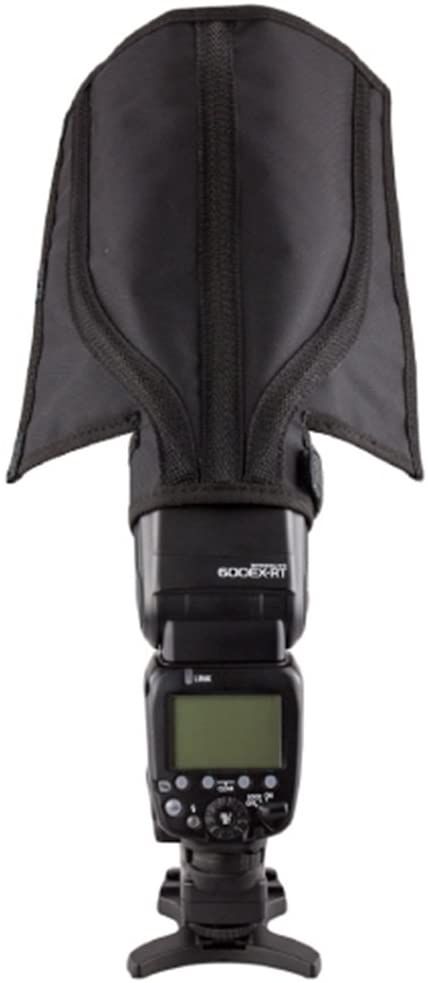 This Reflector is used to enlarge and diffuse the light with the flash in the direct flash position. The light will be softened and distributed more evenly when it passes through the speedlight flash. It helps solving the harsh reflections, glare spots, red eye or deep shadows problems.
