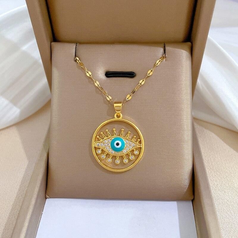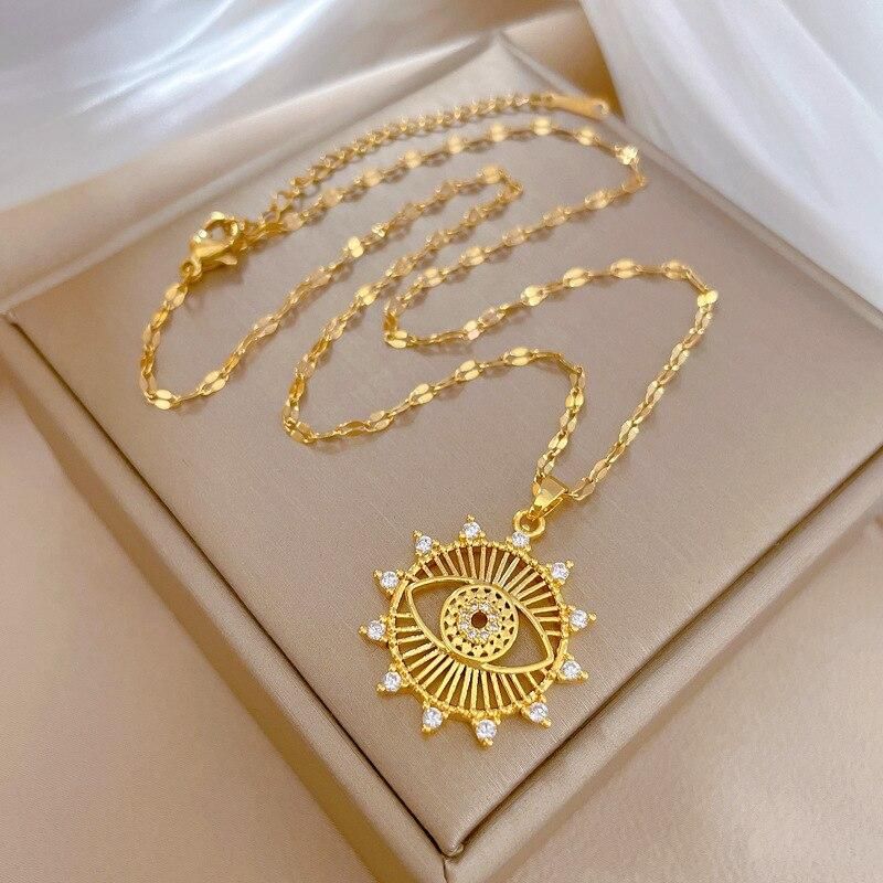 Buy Flashbuy Exquisite 316L Stainless Steel Rhinestone Heart Evil Eye Pendant Necklace For Women Fashion Girls Charm On Neck Jewelry in Nigeria