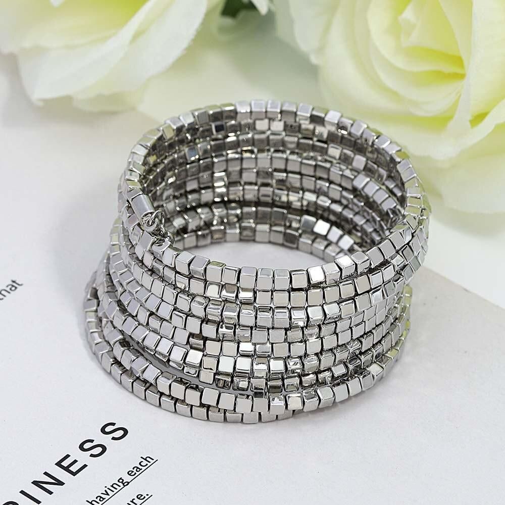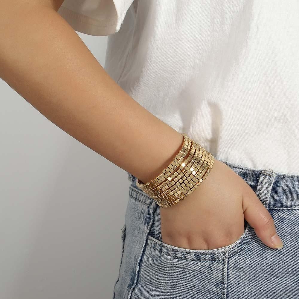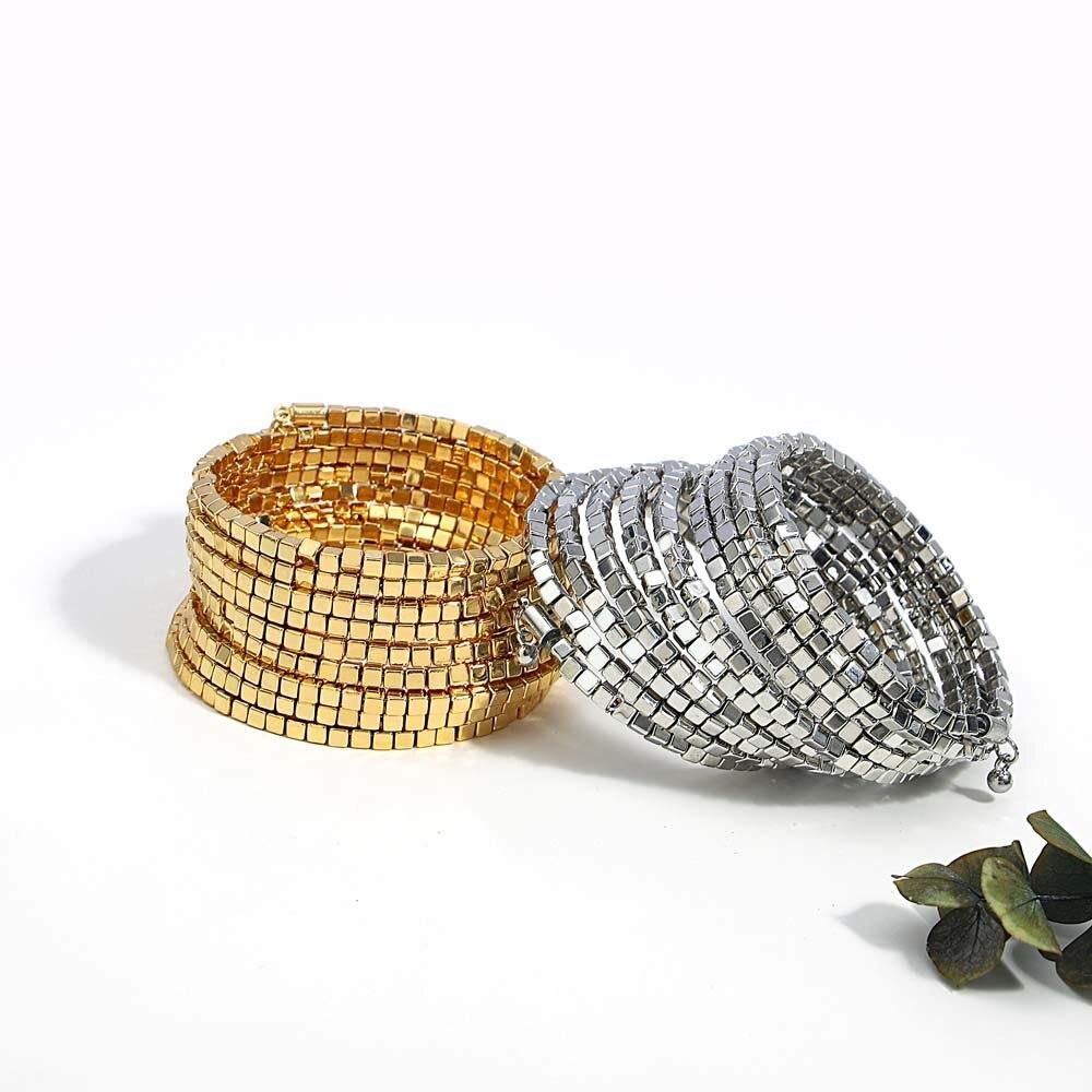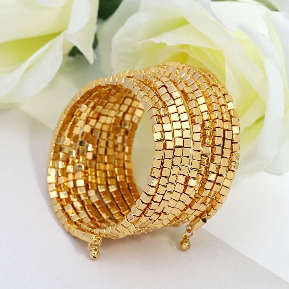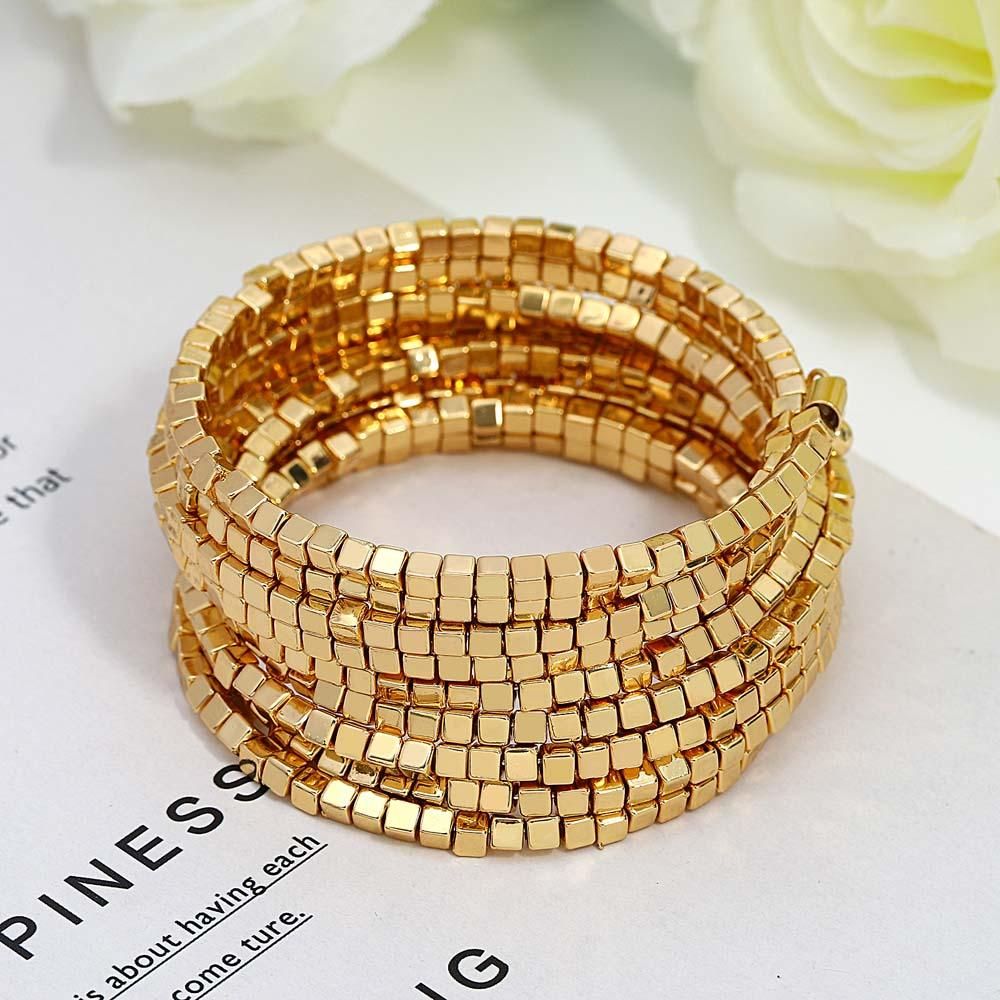 Buy Flashbuy New Simple Classic Multi Row Square Beads Wrap Gold Color Bangle Bracelet for Women Fahsion Accessories Teen Gifts in Nigeria