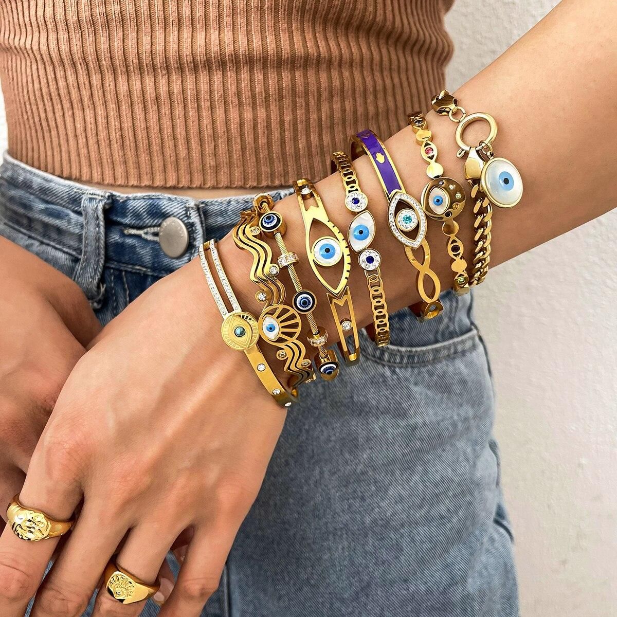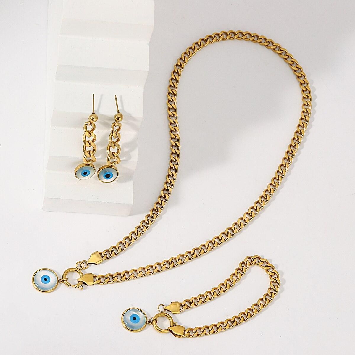 Buy Flashbuy Trendy Turkish Evil Eye Stainless Steel Necklace For Women Female Statement Ethnic Style Inlaid Shell Bracelet Earrings in Nigeria