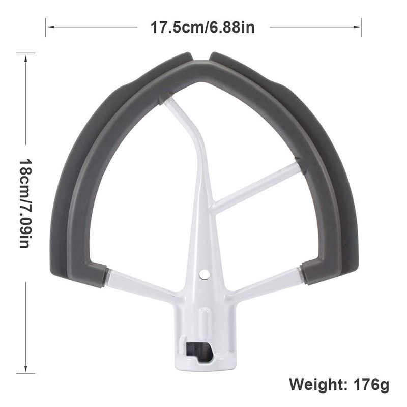 6qt Mixer Attachments Key Features: The smart design continuously scrapes, folds, mixes, and beats both horizontally & vertically. Virtually eliminates build-up on the blade. Both sides soft silicone edges ensure mixing is done thoroughly without scratching your mixing bowl. In addition, the flexible silicone edges can wipe the bowl clean when pouring finished batters and frostings from the bowl.