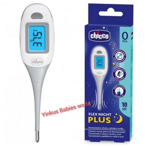 - Thermometer that glows in the dark. The Chicco digital thermometer is designed to measure temperature without turning on the light thanks to the backlit display.