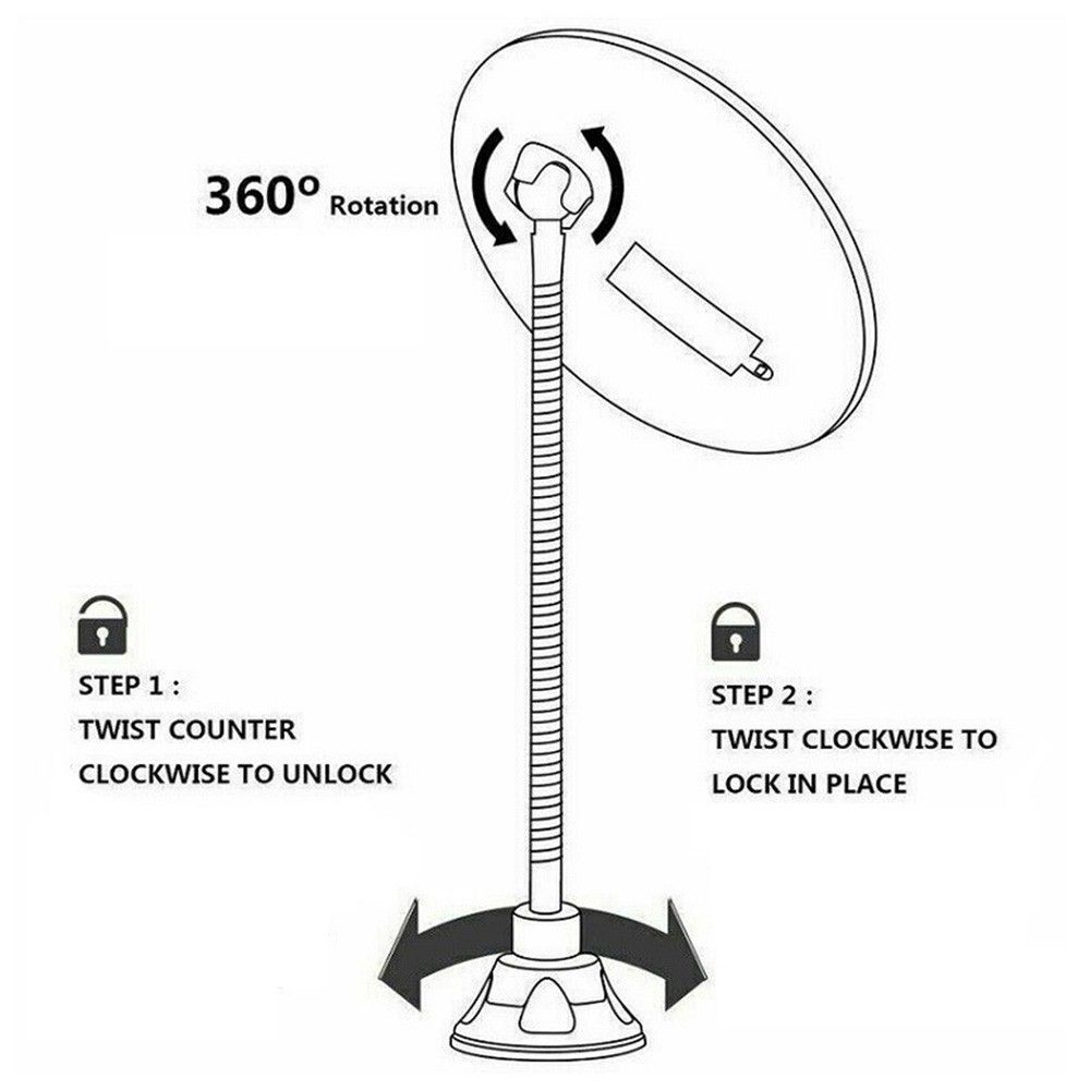 Powerful Suction Cup: -With the suction at the bottom, easy to install, a 360-degree rotating arm can be adjusted to the best angle.