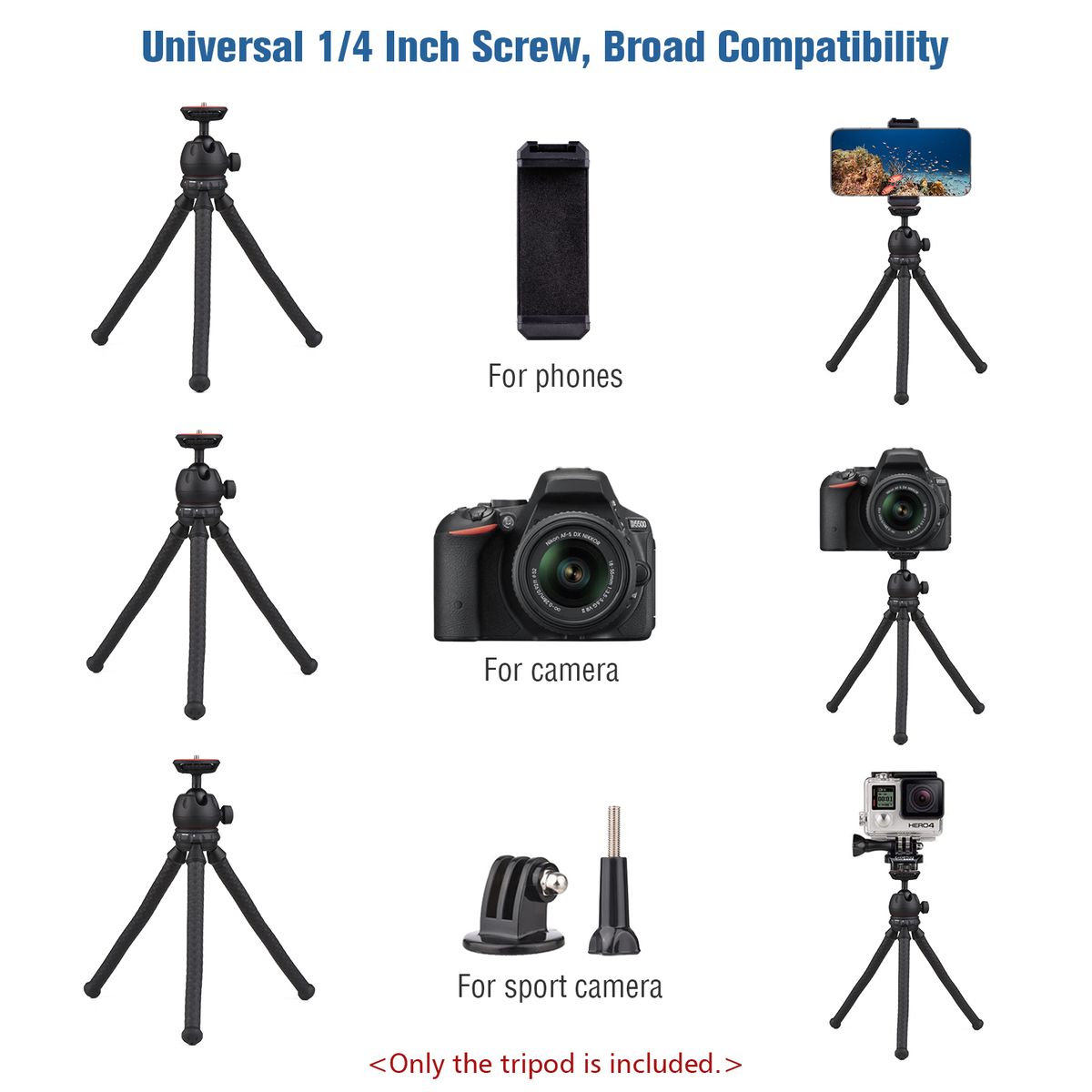 [1/4 Inch Screw] Compatible with phone clips with 1/4 inch screw hole interface, DSLR/ ILDC/ action cameras, photography lights, microphones, etc.
