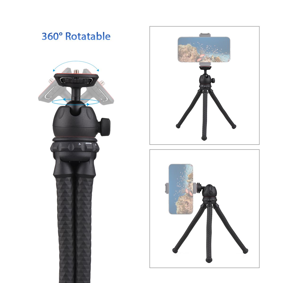 [Flexible Bendable Legs] Soft and easy to bend, can be easily mounted to a tree, branch, pole, fence, gate, and more; also suitable for using as a desktop stand.