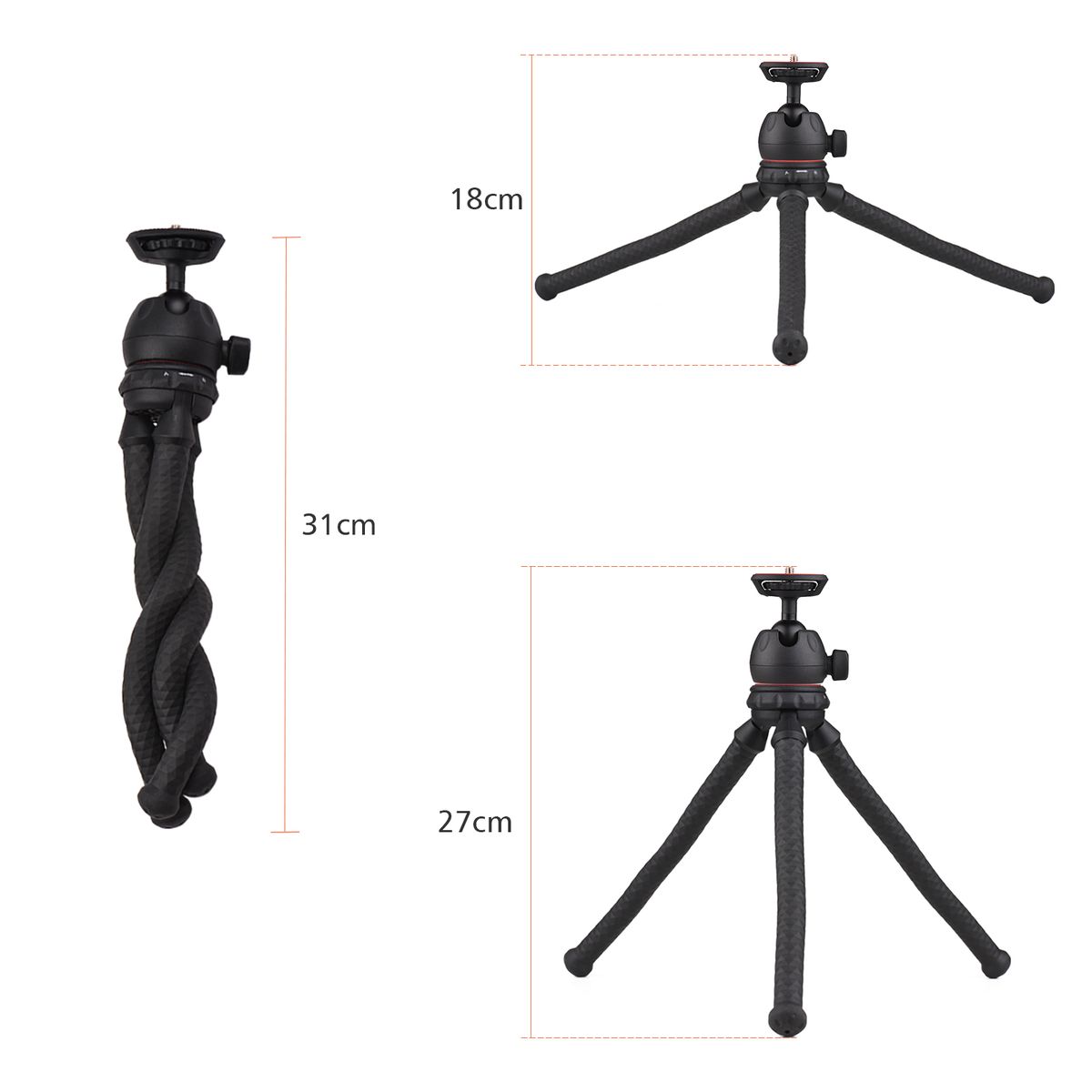 Tripod Height: 18cm/ 7.08inch; 27cm/ 10.6inch