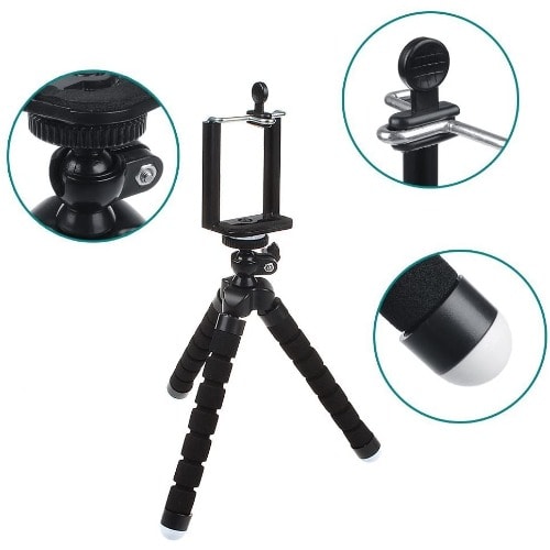 Buy Flexible Sponge Octopus Tripod Stand + FREE Phone Holder Clip - Black in Nigeria