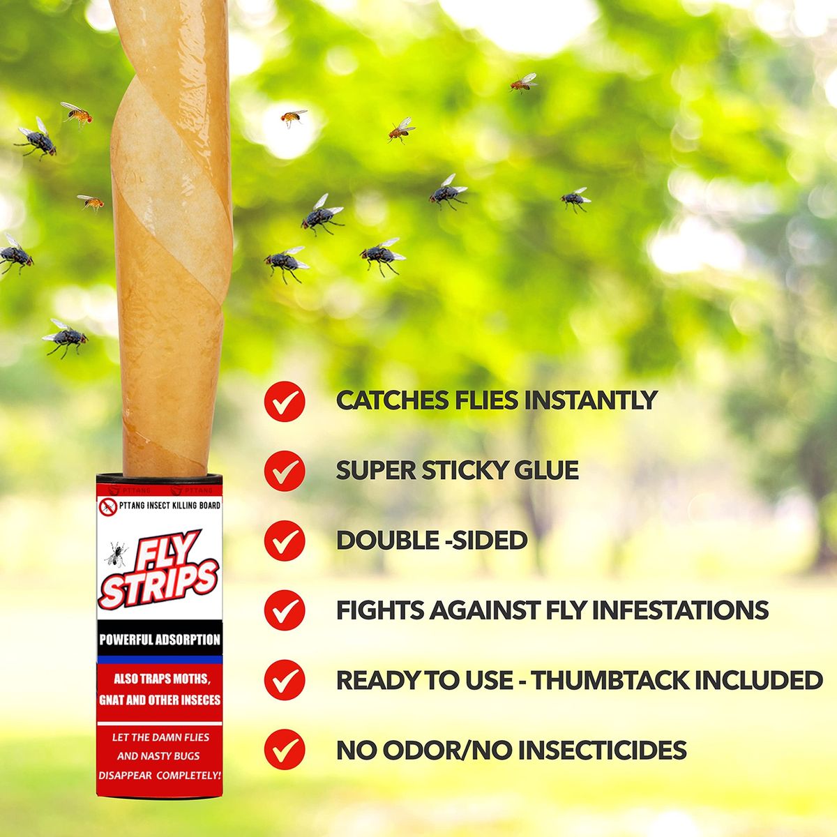 Designed to hold flies firmly to prevent them from breaking free, this sticky fly sticker uses a strong adhesive; and it can catch flies on all sides because of its double-sided design.