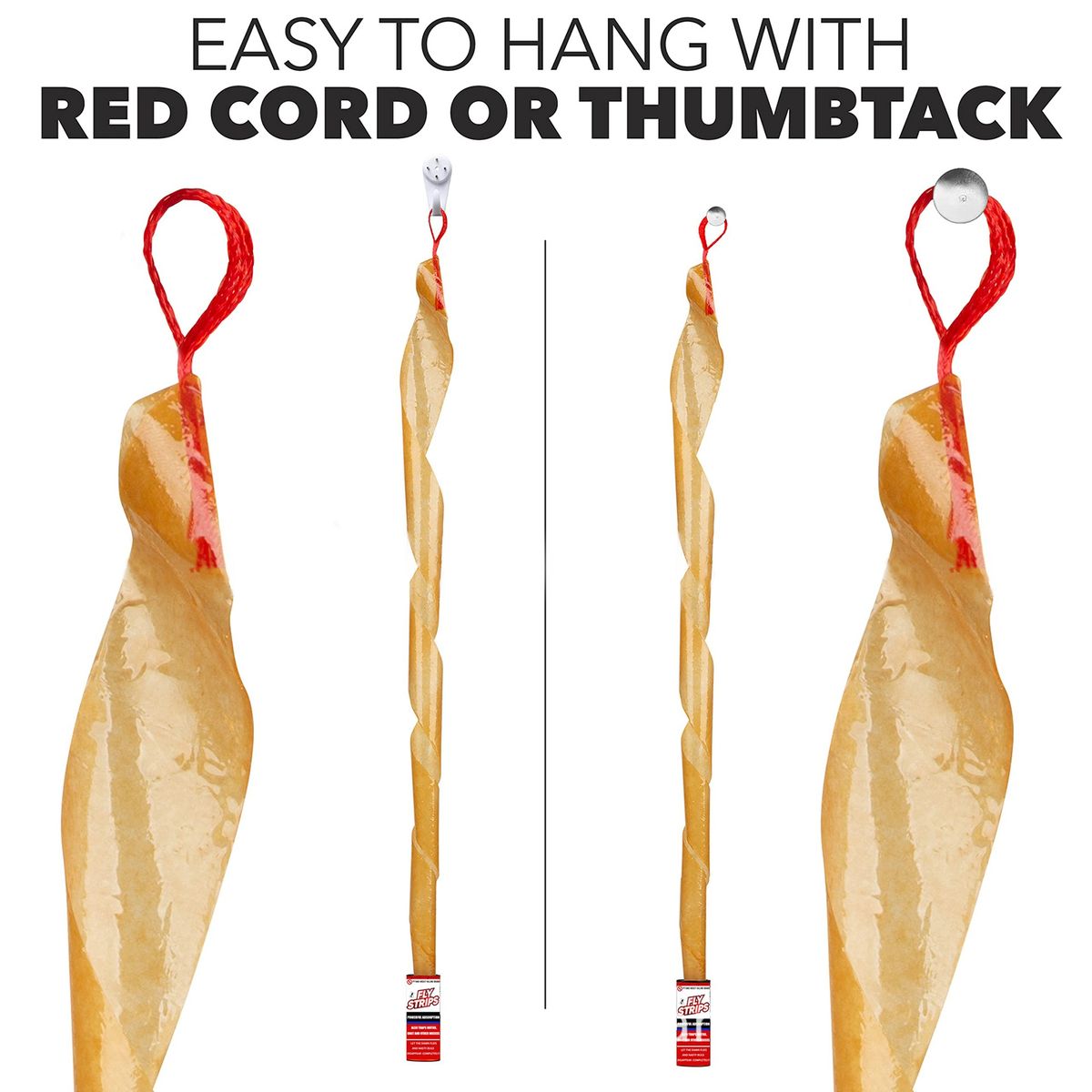 You can safely use this sticky fly sticker because it has no insecticides, no smell; and it is easy to hang to avoid dirtying the table because of its lanyard design.