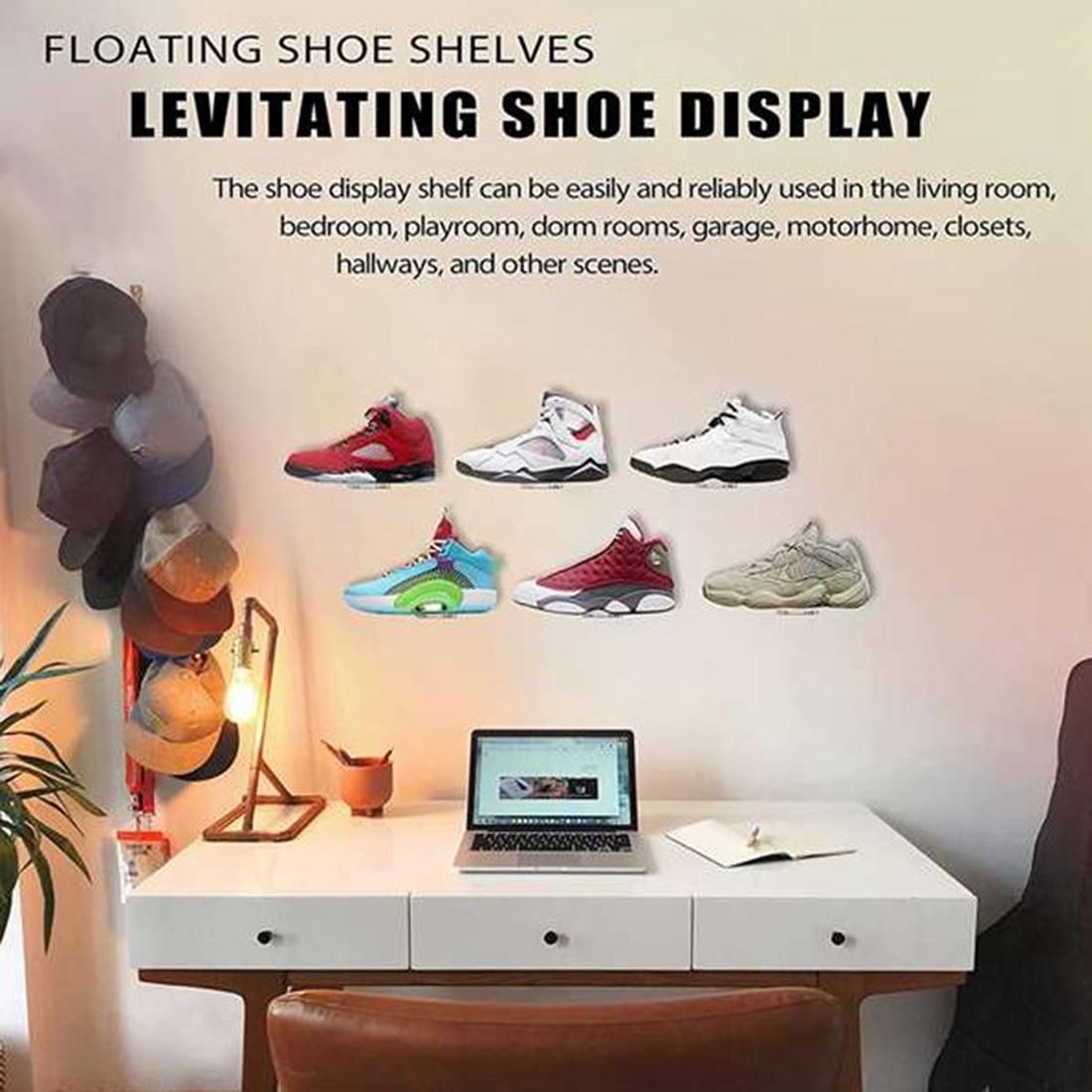 Detailed Information About The Product:DISPLAY YOUR TOP SHOES: Take those unique shoes out of the box and show them to everyone. Your friends will be fascinated with your new sneaker collection setup. The shoe shelf for wall are designed so your sneakers a floating effect.