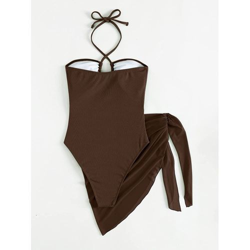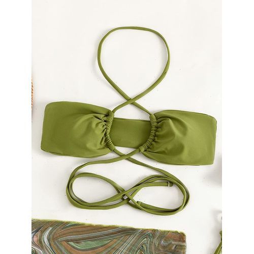 - Lace up, halter neck, tie side, cover up beach skirt, 3 piece bikini swimsuit