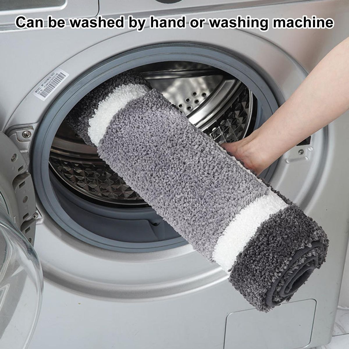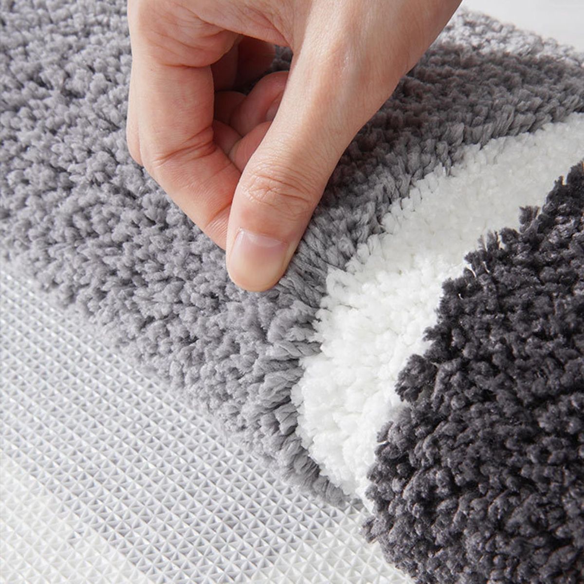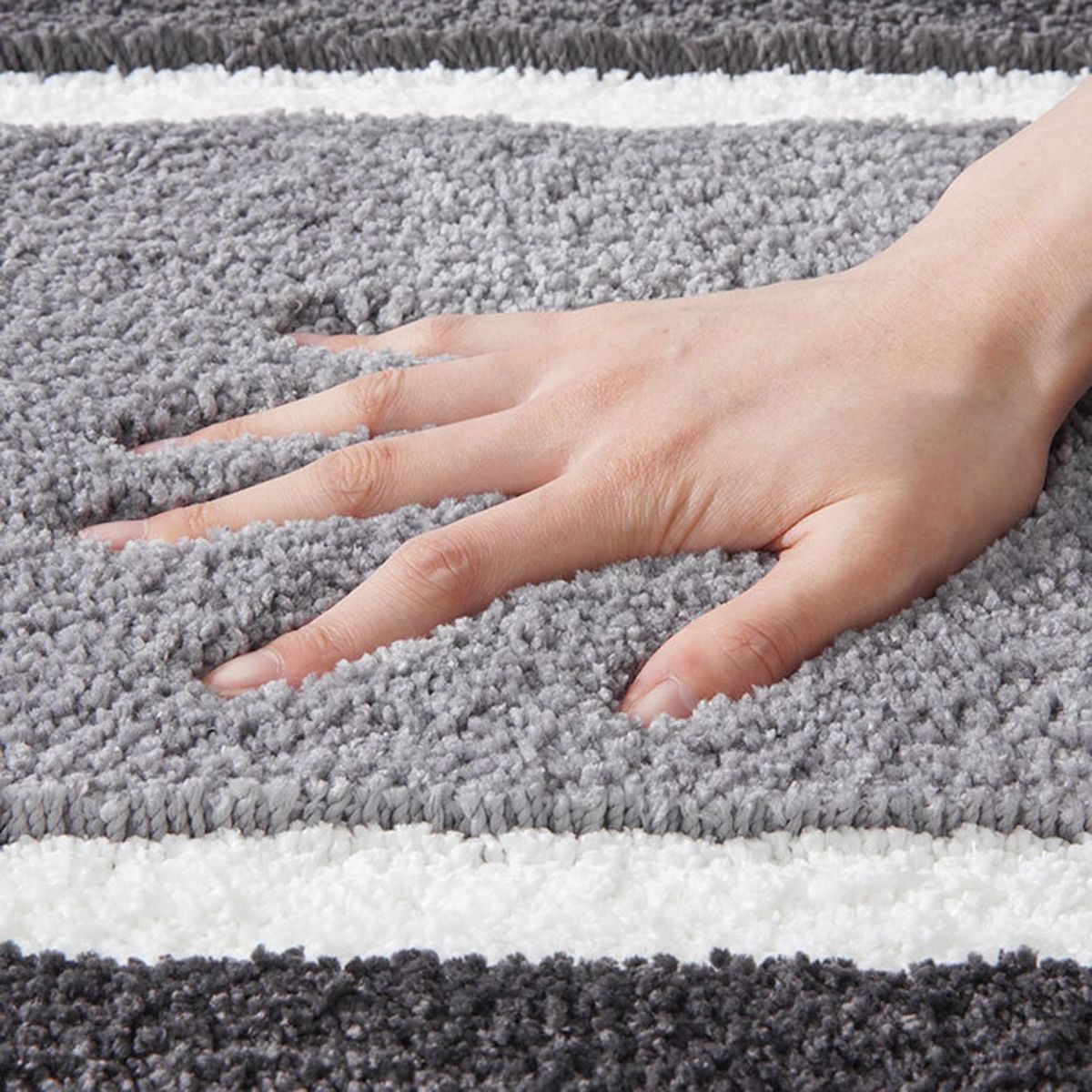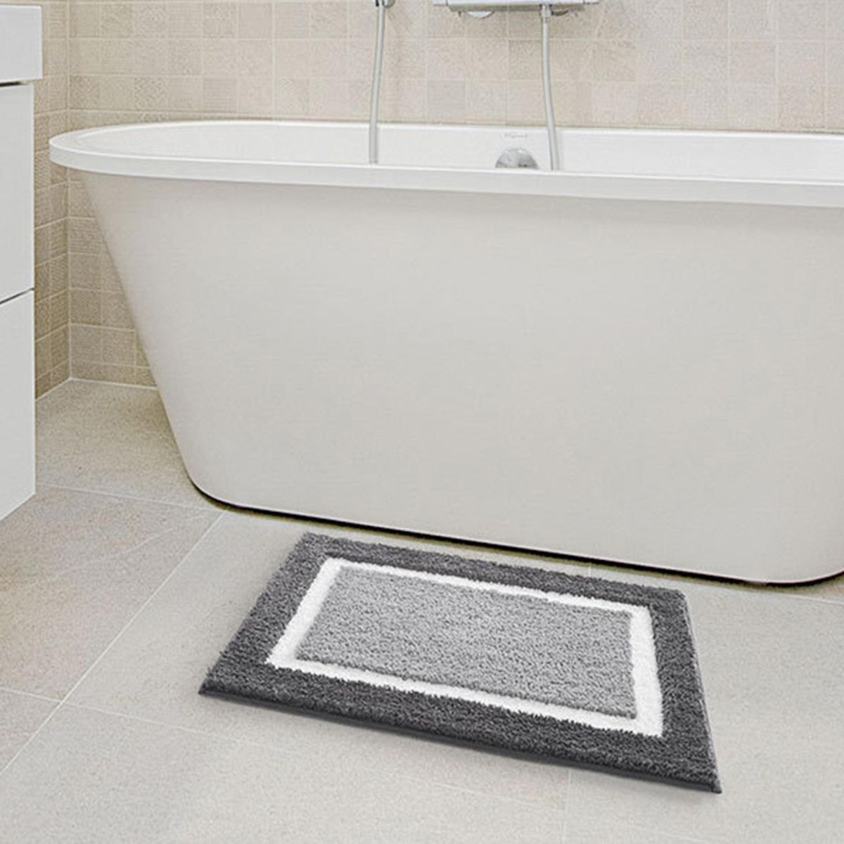 Perfect for wet bathroom floors, the floor mat has quick-drying, absorbent, anti-scratch, anti-stain, and anti-slip functions. A very simple rectangle design is used.